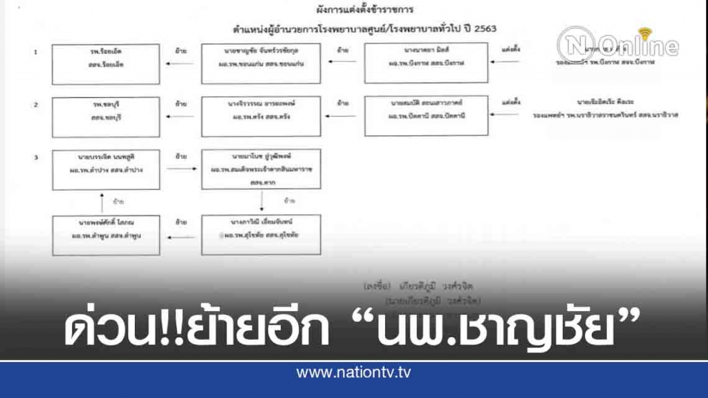 จากที่นายแพทย์ชาญชัย จันทร์วรชัยกุล ผู้อำนวยการโรงพยาบาลขอนแก่น กลับคืนรับตำแหน่ง โดยเมื่อช่วงเช้าได้เดินทางกราบไหว้สักการะสิ่งศักดิ์สิทธิ์ ในโรงพยาบาล ทั้งห้องพิธีสงฆ์เชษฐโชติศักดิ์ อนุสาวรีย์สมเด็จพระพุฒาจารย์ ศาลาพระพุทธโคดม สมเด็จหลวงพ่อองค์ดำ และศาลพระพรหม จากนั้นจะได้ร่วมกันทำบุญเลี้ยงพระถวายเพล โดยช่วงบ่ายเข้ารายงานตัวต่อผู้ว่าราชการจังหวัดขอนแก่น แล้วกลับมาตรวจเยี่ยมหน่วยงานในโรงพยาบาลนั้นเมื่อวันที่ 9 ต.ค. 63 จากเพจกระทรวงสาธารณสุข กลุ่มงานความต่อเนื่อง กลุ่มงานสร้างความต่อเนื่องทางการบริหาร ข้าราชการ ข่าวประชาสัมพันธ์ ด่วนที่สุด หนังสือเวียน ปรากฏว่า มีผังการแต่งตั้งข้าราชการ ตำแหน่งผู้อำนวยการโรงพยาบาลศูนย์ /โรงพยาบาลทั่วไป ปี 2563รวมทั้งมีคำสั่งกระทรวงสาธารณสุข ที่ 1047 12563 เรื่อง ย้ายข้าราชการ อาศัยอำนาจตามความในมาตรา 57 มาตรา 63 และมาตรา 132 แห่งพระราชบัญญัติ ระเบียบข้าราชการพลเรือน พ.ศ. 2551 กฎ ก.พ. ว่าด้วยการให้ข้าราชการพลเรือนสามัญได้รับเงินเดือน พ.ศ. 2551 หนังสือสำนักงาน ก.พ. ที่ น 0708/ว 9 ลงวันที่ 12 พฤษภาคม 2535 ที่ นร 0703/ว 5 ลงวันที่ 31 มีนาคม 2538 ที่ นร 1006/ 7 ลงวันที่ 6 มีนคม 2552 ที่ นร 1006/ว 16 ลงวันที่ 22 มิถุนายน 2552ที่ นร 1006/ว 17 ลงวันที่ 28 กรกฎาคม 2558 มติ อ.ก.พ.กระทรวงสาธารณสุข ครั้งที่ 5/2561 เมื่อวันที่ 25 กรกฎาคม 2561 และหนังสือกระทรวงสาธารณสุข ที่ สธ 0208.05/ว 510 ลงวันที่ 23 สิงหาคม 2561 ให้ย้ายข้าราชการ จำนวน 10 ราย วันที่ 9 ตุลาคม พ.ศ.2563โดยเอกสารแนบท้ายลำดับที่ 1 ปรากฏชื่อ นายแพทย์ชาญชัย จันทร์วรชัยกุล ผู้อำนวยการโรงพยาบาลขอนแก่น ย้ายไปดำรงตำแหน่ง ผอ.โรงพยาบาลร้อยเอ็ด โดยมีนางนาตยา มิลล์ ผอ.รพ.บึงกาฬ รับตำแหน่ง ผอ.โรงพยาบาลขอนแก่น ลงชื่อการโยกย้าย นายเกียรติภูมิ วงศ์รจิต ปลัดกระทรวงสาธารณสุข