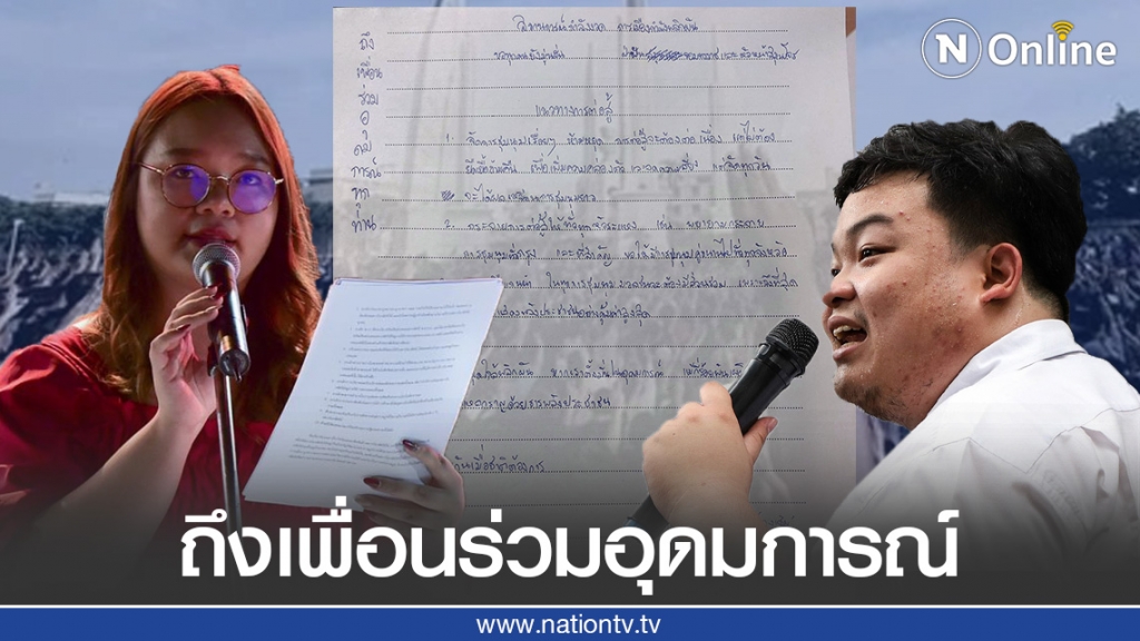 เปิดจดหมาย "เพนกวิน-รุ้ง" ส่งถึงเพื่อนร่วมม็อบหลังหมดอิสรภาพ