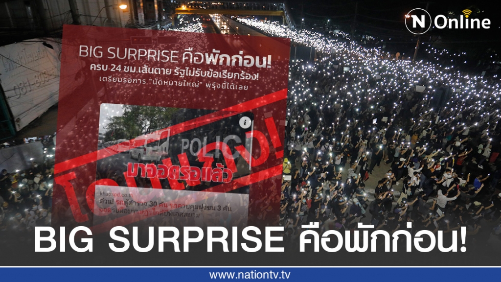 BIG SURPRISE คือไม่มี SURPRISE วันนี้พักก่อน! ตลอดเกือบ 1 อาทิตย์ที่ผ่านมาเราได้ต่อสู้ร่วมกันอย่างหาญกล้าแต่รัฐบาลกลับไม่พึงสังวรไว้ว่า ความล่มสลายของศักดินากำลังมาเยือน เมื่อไม่รับข้อเรียกร้อง ก็เตรียมรอฟังการนัดหมายครั้งใหญ่ในวันพรุ่งนี้พร้อมกัน! (อันนี้ไม่แกง!)ส่วนใครไฟแรงวันนี้อยากลุยต่อ มีประชาชนจัดม็อบกันเองหลายจุด สามารถเข้าร่วมได้ที่นี่!