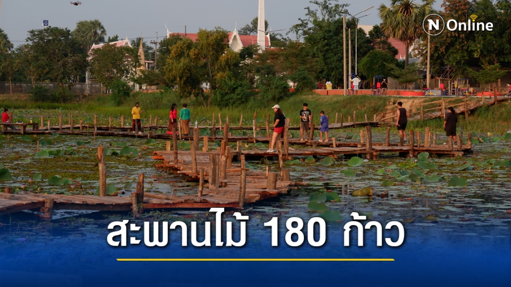 ที่อำเภอกันทรวิชัย จ.มหาสารคาม สร้างจุดเช็คอินใหม่ ชวนท่องเที่ยวสะพานไม้บึงหนองบัว ชื่นชมธรรมชาติ ดอกบัวบานเต็มบึง และนกเป็ดน้ำหนีหนาวจากไซบีเรีย นนท.แห่เช็คอินกลางสะพานท่ามกลางดอกบัวที่สวยงาที่บานสะพรั่ง