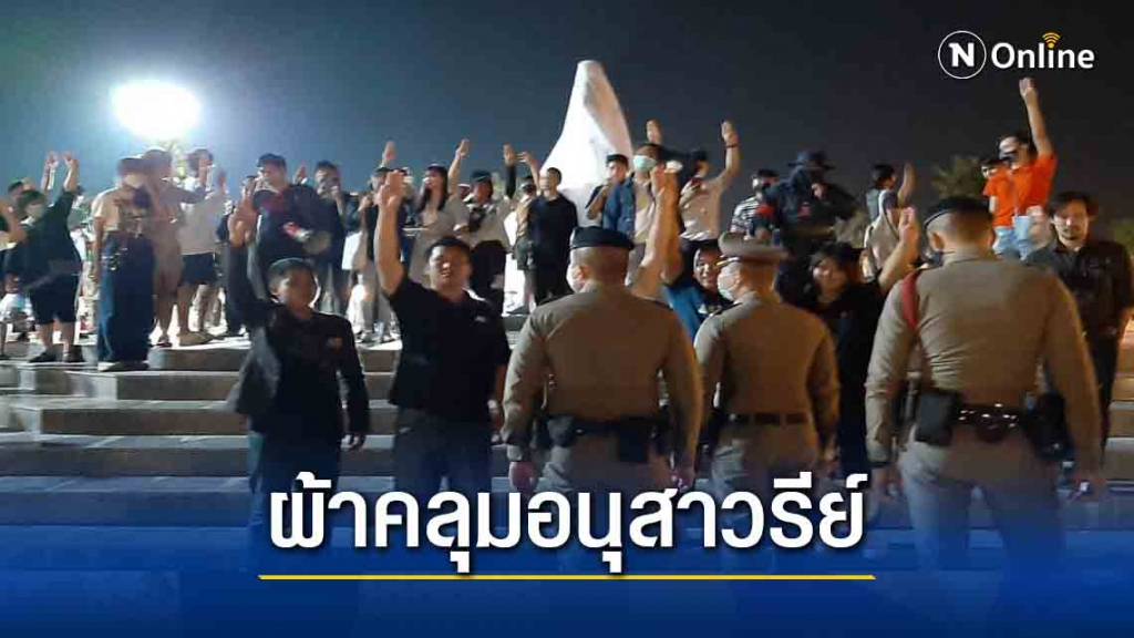 จนเวลาประมาณ 20.00 น. แกนนำ กล่าวบนเวทีปราศรัยว่าอนุสาวรีย์จอมพลสฤษดิ์ ธนะรัชต์ เป็นอนุสาวรีย์ที่ก่อสร้างขึ้นมาโดยให้เหตุผลว่าเป็นผู้ก่อตั้งเมืองขอนแก่น แต่อนุสาวรีย์ของจอมพลสฤษดิ์ เป็นอนุสาวรีย์ของเผด็จการที่เป็นรากฐานและส่งต่อความเป็นเผด็จการ ที่กล่าวหาว่านักศึกษาและประชาชนเป็นคอมมิวนิสต์ จากนั้นได้เชิญชวนผู้ร่วมชุมนุม ใช้ผ้าสีขาวที่เขียนความคิดเห็น ความหวัง สิ่งที่ต้องการให้เกิดขึ้นในประเทศไทย ที่เขียนข้อเรียกร้องทั้ง 3 ข้อ จะทำให้เผด็จการหายไปโดยการนำผ้าไปคลุมปิดอนุสาวรีย์จอมพลสฤษดิ์ จากนั้นผู้เข้าร่วมชุมนุมช่วยกันนำผ้าขาวคลุมอนุสาวรีย์ พร้อมกับชู 3 นิ้วแสดงเชิงสัญลักษณ์