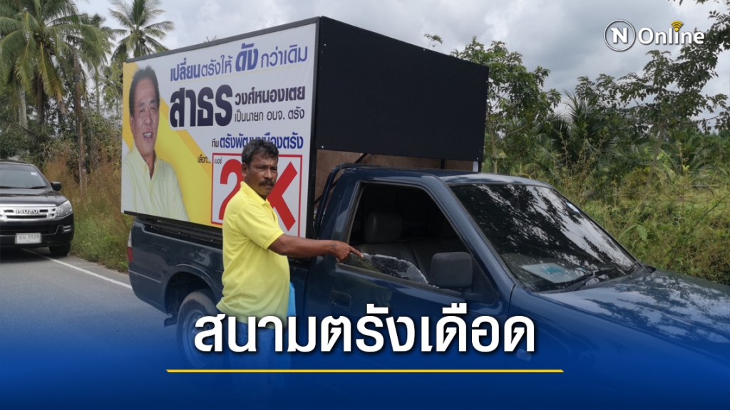 การหาเสียงเลือกตั้งนายกอบจ.ตรังเริ่มดุเดือด หลังเมื่อวานนี้พบมีการกรีดป้ายหาเสียงของนายสาธร วงศ์หนองเตย ผู้สมัครชิงเก้าอี้นายก อบจ.ตรัง หมายเลข 2 ในพื้นที่ อ.กันตัง และมาถึงวันนี้มีการทุบกระจกหาเสียงของนายสาธรอีกครั้งในวันนี้ ในพื้นที่ อ.หาดสำราญ