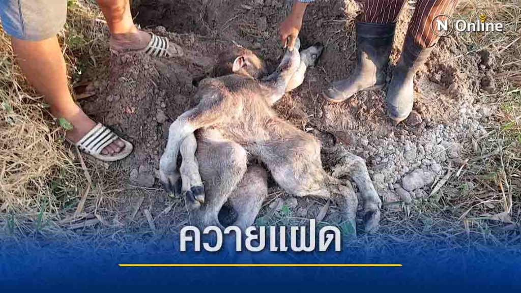 สุดท้ายต้องจับแม่ควายรั้งกับเสาคอกควายก่อนที่จะใช้น้ำมันพืชช่วยในการหล่อลื่นแล้วก็ช่วยกันทำคลอดลูกควายใช้เวลาเกือบ 3ชั่วโมงสามารถจึงนำลูกควายออกมาได้แต่ลูกควายก็เสียชีวิตไปแล้ว และเมื่อลูกควายโผล่ออกมาทั้งตัวทุกคนที่เห็นก็ต้องตกใจเพราะควายมีลักษณะคล้ายกับเป็นแฝดลำตัวติดกันแต่ว่ามีหัว 1 หัว ลำตัวมี 2 ตัว และมีเท้า 8 เท้า เป็นเพศผู้ทั้งคู่