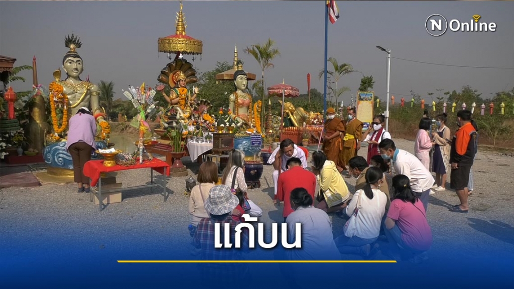 ที่สำนักสงฆ์สันป่าตึง เลขที่ 186 หมู่ที่ 8 ต.พระบาท อ.เมือง จ.ลำปาง ชาวบ้านหลายรายทั้งชายและหญิงซึ่งล่าสุดได้รับโชคถูกสลากกินแบ่งรัฐบาลงวดประจำวันที่ 17 มกราคม 2564 ที่ผ่านมา บางรายได้เงินร่วมล้านบาท บางรายถูกรางวัลเลขท้าย 3 ตัว ถึง 15 ใบ ต่างพากันมาทำพิธีแก้บนโดยการนำวงดนตรีพื้นเมือง พร้อมมีการฟ้อนรำต่อหน้ารูปปั้นพญานาค