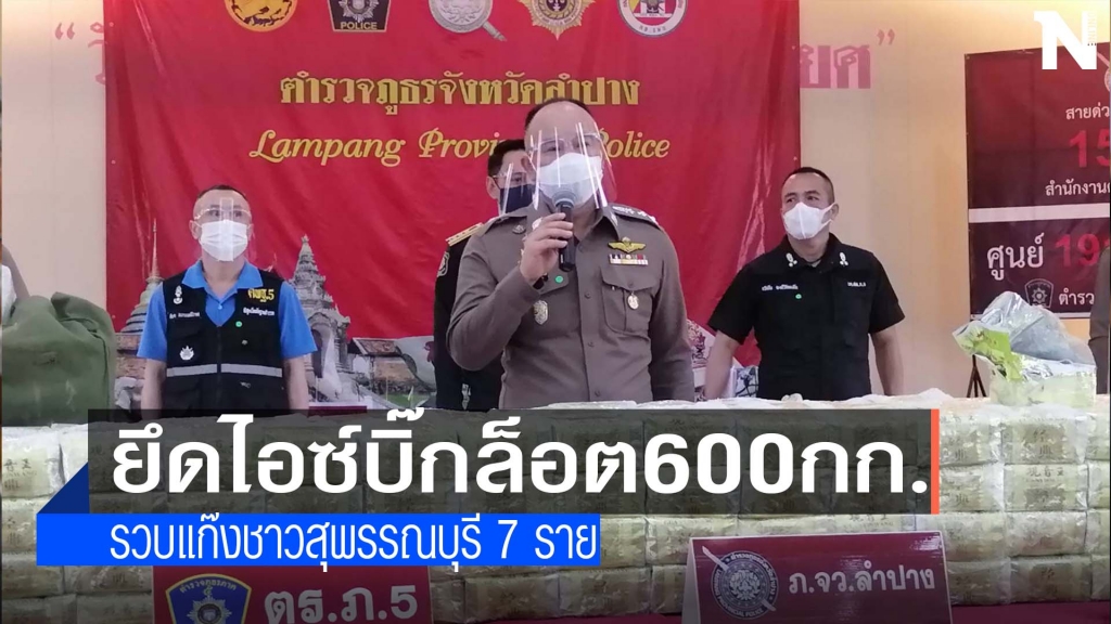 วันที่ 21 เมษายน 2564 ที่ห้องประชุม ภ.จว.ลำปาง พล.ต.ท.ประจวบ วงศ์สุข ผู้บัญชาการตำรวจภูธรภาค 5 พร้อมด้วยนายณรงค์ศักดิ์ โอสถธนากร ผู้ว่าราชการจังหวัดลำปางพล.ต.ต.นันทวิทย์ เทียมบุญธง ผบก.ภ.จว.ลำปาง และเจ้าหน้าที่คณะกรรมการป้องกันและปราบปรามยาเสพติด(ป.ป.ส.) ได้ร่วมกันแถลงข่าวการจับกุมยาเสพติดรายใหญ่ หลังเจ้าหน้าที่ตำรวจ สภ.แม่พริก จ.ลำปาง ได้จับกุมผู้ต้องหา จำนวน 7 ราย ได้แก่ นายอภิวัฒน์ สุขอำภร อายุ 24 ปี ชาว ต.บ้านโพธิ์ อ.เมือง จ.สุพรรณบุรี นายภาคิน เหลี่ยมกำแหง อายุ 24 ปี ชาว ต.บ้านโพธิ์ อ.เมือง จ.สุพรรณบุรี นายศักดา งามขำ อายุ 25 ปี ชาว ต.ปลายนา อ.ศรีประจันต์ จ.สุพรรณบุรี น.ส.น้ำฝน ธัญญเจริญ อายุ 23 ปี ชาว ต.หนองโพธิ์ อ.หนองหญ้าไซ จ.สุพรรณบุรี นายธนากร มะขันทอง อายุ อายุ 37 ปี ชาว ต.บ้านโพธิ์ อ.เมือง จ.สุพรรณบุรี น.ส.ปิยะวรรณ ก่วยสกุล อายุ 30 ปี ชาว ต.บ้านโพธิ์ อ.เมือง จ.สุพรรณบุรี และน.ส.ดารารัตน์ สมจิตร์ อายุ 21 ปี ชาว ต.บ้านโพธิ์ อ.เมือง จ.สุพรรณบุรี พร้อมของกลางยาไอซ์ ลักษณะเป็นเกล็ดสีขาว บรรจุอยู่ในซองชาสีเขียวจำนวน 600 กิโลกรัม มูลค่า 600 ล้านบาท ก่อนนำตัวไปขยายผลการจับกุม