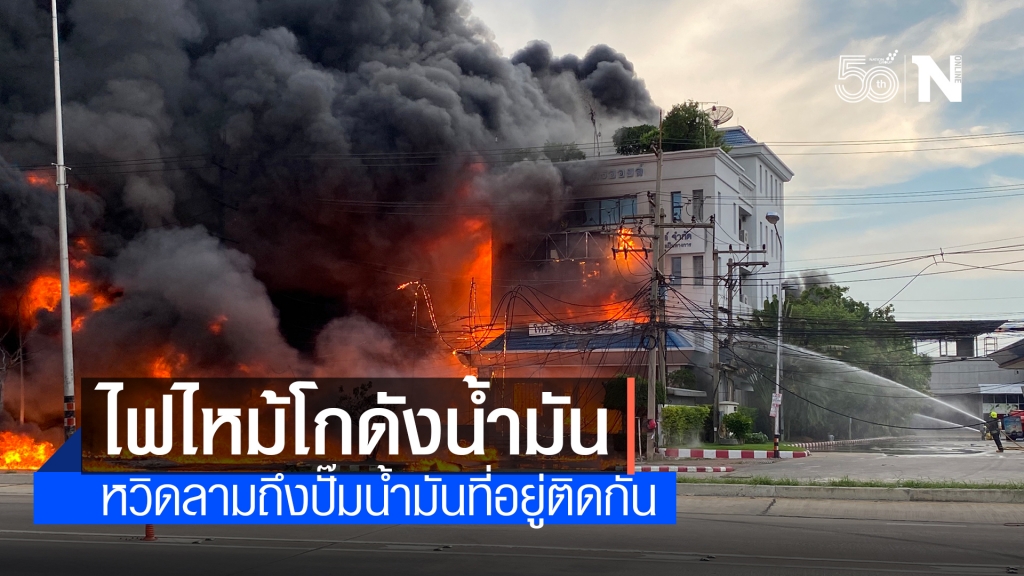 ที่เกิดเหตุพบแสงเพลิงลุกไหม้อย่างรุนแรง แสงไฟลุกโหมตัวอาคาร ซึ่งบริษัท ประภากรออยล์ จำกัด ทำธุรกิจประเภทน้ำมันเครื่องซึ่งอยู่ติดกับปั้มน้ำมัน ปตท. อ้อมใหญ่