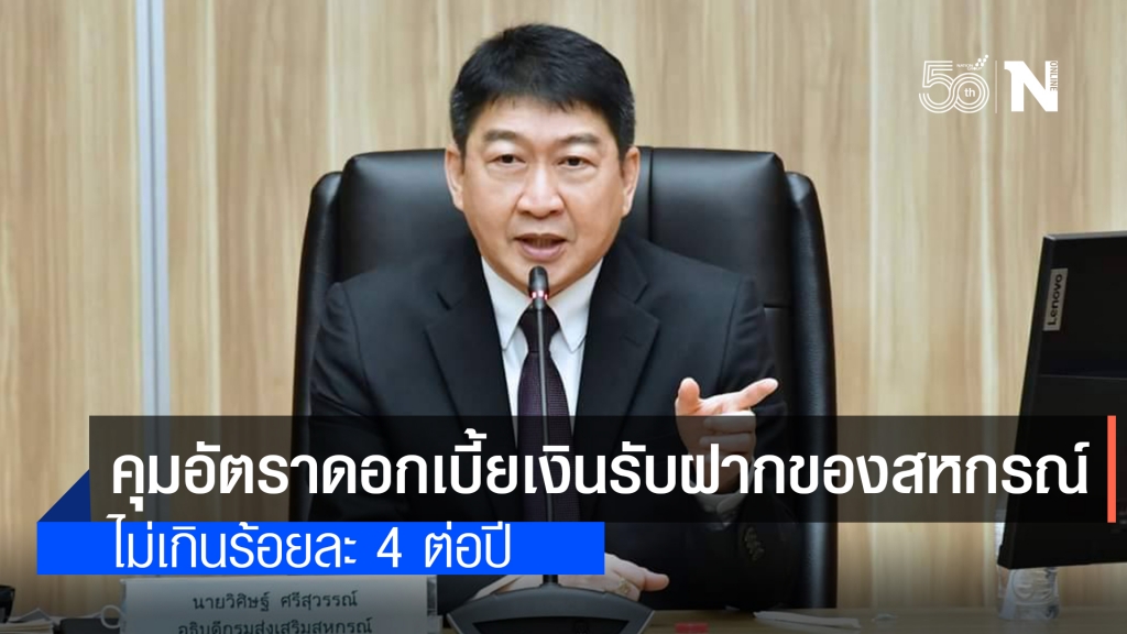 นายวิศิษฐ์ ศรีสุวรรณ์ อธิบดีกรมส่งเสริมสหกรณ์ เปิดเผยว่า กรมส่งเสริมสหกรณ์ได้ออกประกาศนายทะเบียนสหกรณ์ เรื่องกำหนดอัตราดอกเบี้ยเงินรับฝากของสหกรณ์ เมื่อวันที่ 29 เม.ย. 2564 กำหนดอัตราดอกเบี้ยเงินฝากทุกประเภทของสหกรณ์และชุมนุมสหกรณ์ทุกประเภทให้ไม่เกินร้อยละ 4 ต่อปี โดยให้มีผลตั้งแต่วันที่ 1 ก.ค. 2564 เป็นต้นไป เว้นแต่กรณีการรับฝากเงินประเภทประจำที่ได้กำหนดอัตราดอกเบี้ยแน่นอนแล้วให้สามารถจ่ายอัตราดอกเบี้ยตามอัตราที่กำหนดสำหรับบัญชีที่ได้เปิดไว้ก่อนมีประกาศฉบับนี้