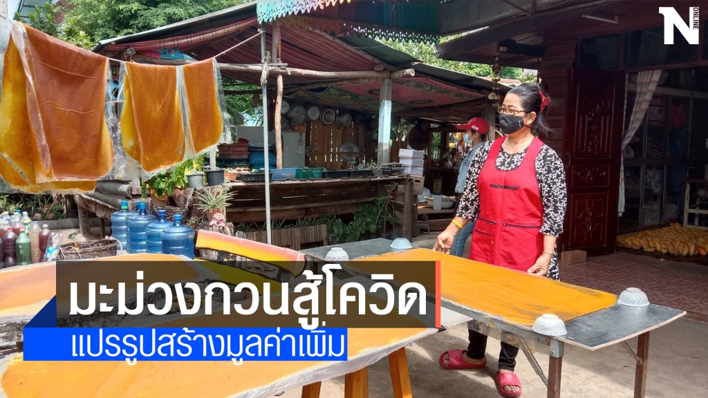 8 มิถุนายน 2564 นางกัลยาณี คำธานี อายุ 55 ปี ชาวบ้านโคกสี หมู่ที่ 2 ตำบลขุนทอง อำเภอบัวใหญ่ จังหวัดนครราชสีมา เปิดเผยว่า ในช่วงวิกฤติโควิด 19 ทุกคนต่างต้องดิ้นรน ทำทุกวิถีทางเพื่อเลี้ยงชีพ ซึ่งตนยึดอาชีพทำมะม่วงกวนส่งขายมานานหลายปีแล้ว สืบทอดอาชีพนี้มาจากแม่ แต่ออร์เดอร์ลดลงอย่างมากในช่วงโควิด19 ระบาด ทำให้ผลผลิตมะม่วงล้นตลาด ราคาตกต่ำ แทบไม่เห็นกำไร จึงมองหาทางรอด นำมะม่วงมาแปรรูปเป็นส้มแผ่น สร้างมูลค่าเพิ่มให้กับผลผลิต ซึ่งมะม่วงที่ตนและลูกสาวรับซื้อมาจากเกษตรกรในพื้นที่ จะเป็นมะม่วงสุกหลากหลายสายพันธุ์ อาทิ พันธุ์เขียวเสวย น้ำดอกไม้ และพันธุ์มหาชนก ซึ่งเป็นมะม่วงพันธุ์ดี รสชาติดี เมื่อนำมะม่วงสุกตามธรรมชาติมาเป็นวัตถุดิบ แปรรูปจึงได้รสชาติดี เหนียวนุ่มและกลมกล่อม