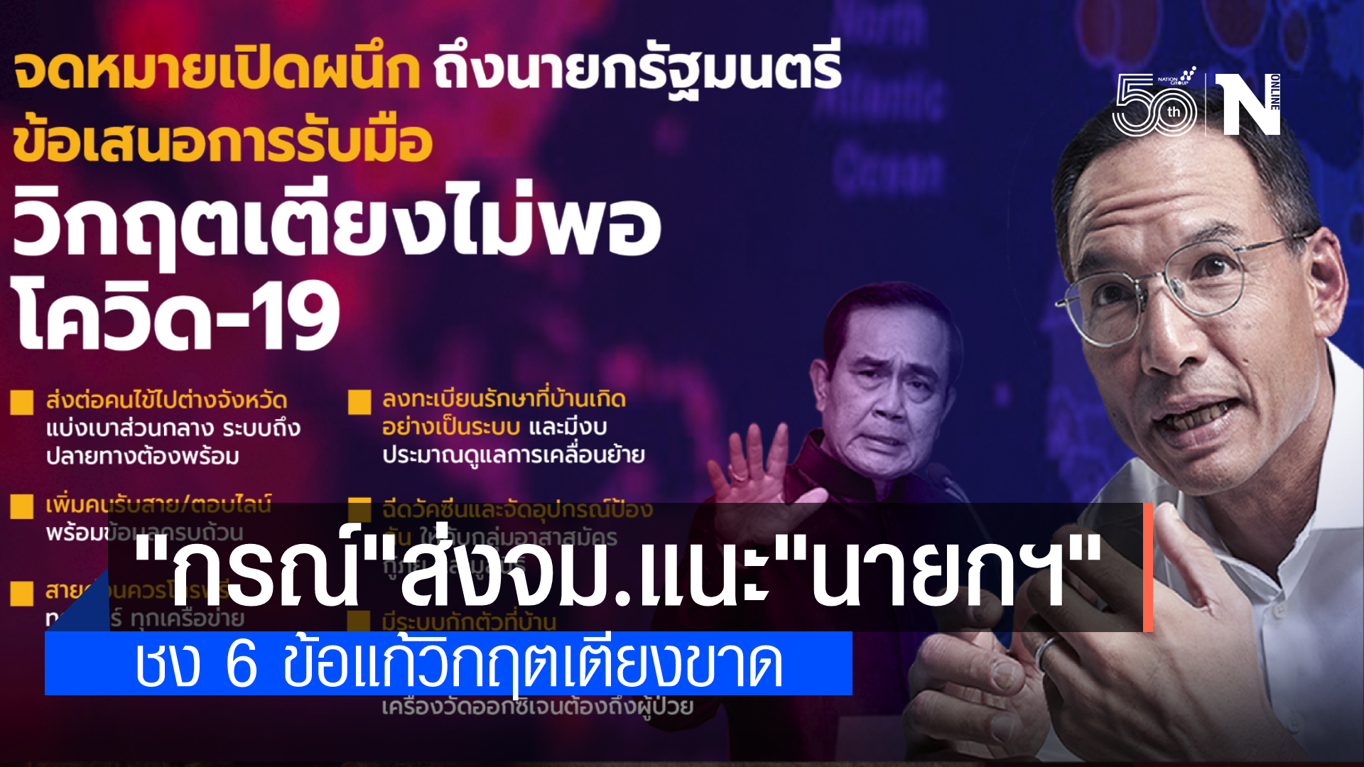 วันนี้ (5 ก.ค.64) สืบเนื่องจากกรณี นายกรณ์ จาติกวณิช หัวหน้าพรรคกล้า ออกจดหมายเปิดผนึกถึงนายกรัฐมนตรี วานนี้(4 ก.ค.)เกี่ยวกับข้อเสนอการรับมือโควิด-19 พรรคกล้า โดย “กลุ่มกล้าอาสาหาเตียง” ได้ประสานงานช่วยเหลือผู้ป่วยโควิดหาเตียงมาตั้งแต่ช่วงสงกรานต์ที่ผ่านมา และพบว่าในช่วงสัปดาห์ที่ผ่านมา เกิดวิกฤตเตียงอย่างหนัก การประสานงานเป็นไปอย่างยากลำบาก มีผู้รอเตียงนานหลายวันจนเสียชีวิต เนื่องจากไม่ได้รับการรักษา พรรคกล้าจึงได้เสนอ 6 มาตรการเป็นแนวทางให้รัฐบาลพิจารณาปรับปรุง เพื่อการช่วยเหลือผู้ป่วยโควิด ได้เข้ารับการรักษาที่มีประสิทธิภาพมากขึ้นได้แก่