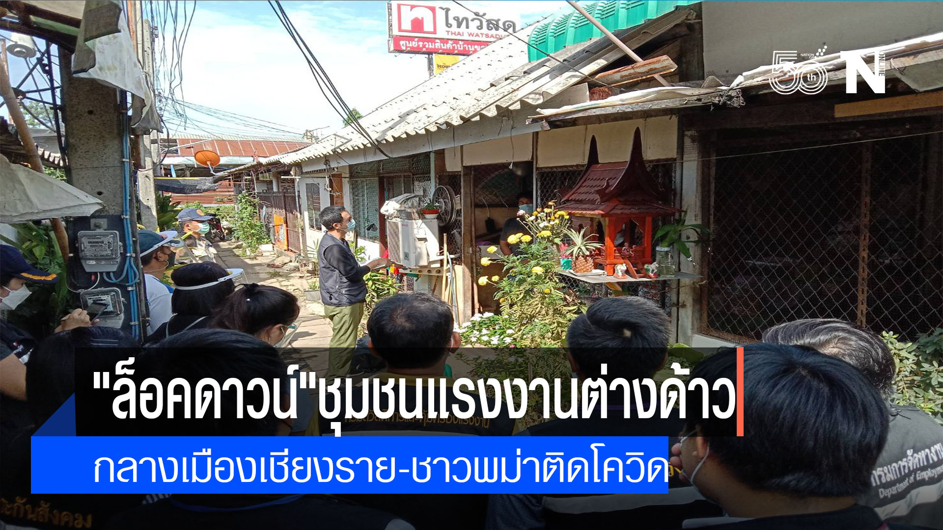 เมื่อเวลา 09.00 น.วันที่ 5 กรกฎาคม 2564 นายประจญ ปรัชญ์สกุล ผู้ว่าราชการจังหวัดเชียงราย ได้มอบหมายให้เจ้าหน้าที่สาธารณสุข จ.เชียงราย เทศกิจเทศบาลนครเชียงราย เจ้าหน้าที่จากกรมแรงงานและคุ้มครองแรงงาน ฝ่ายปกครอง อ.เมืองเชียงราย และหน่วยงานที่เกี่ยวข้อง ได้ร่วมกันเข้าตรวจสอบพื้นที่หมู่ 13 ต.สันทราย อ.เมือง จ.เชียงราย หลังจากได้รับรายงานว่าพบชาวเมียนมา 1 คน ตรวจพบว่าติดเชื้อไวรัสโควิด-19 โดยจากการตรวจสอบพบชุมชนดังกล่าวมีชาวเมียนมาไปเช่าอาศัยอยู่เป็นจำนวนมากและมีคนไทยอาศัยอยู่ไม่กี่คน เนื่องจากตั้งอยู่ใกล้กับตลาดสดค้าปลีกค้าส่งขนาดใหญ่ของ จ.เชียงราย