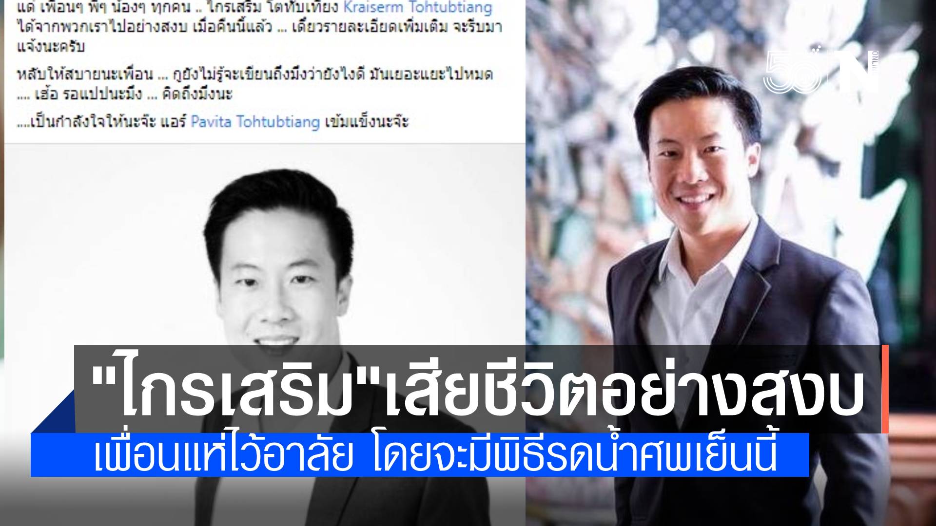 ในเฟซบุ๊กส่วนตัวของผู้ประกาศข่าวชื่อดัง "ภัทร จึงกานต์กุล" โพสต์ข้อความแจ้งข่าวการจากไปของ "ดร.ไกรเสริม โตทับเที่ยง" ทายาทรุ่นที่ 2 ของปลากระป๋องปุ้มปุ้ย ด้วยโรคมะเร็ง ด้วยวัย 43 ปี โดยระบุข้อความว่า แด่เพื่อน พี่ๆ น้องๆ ทุกคน ไกรเสริม โตทับเที่ยง ได้จากพวกเราไปอย่างสงบแล้วเมื่อคืนนี้แล้ว รายละเอียดเพิ่มเติมจะแจ้งให้ทราบอีกครั้ง