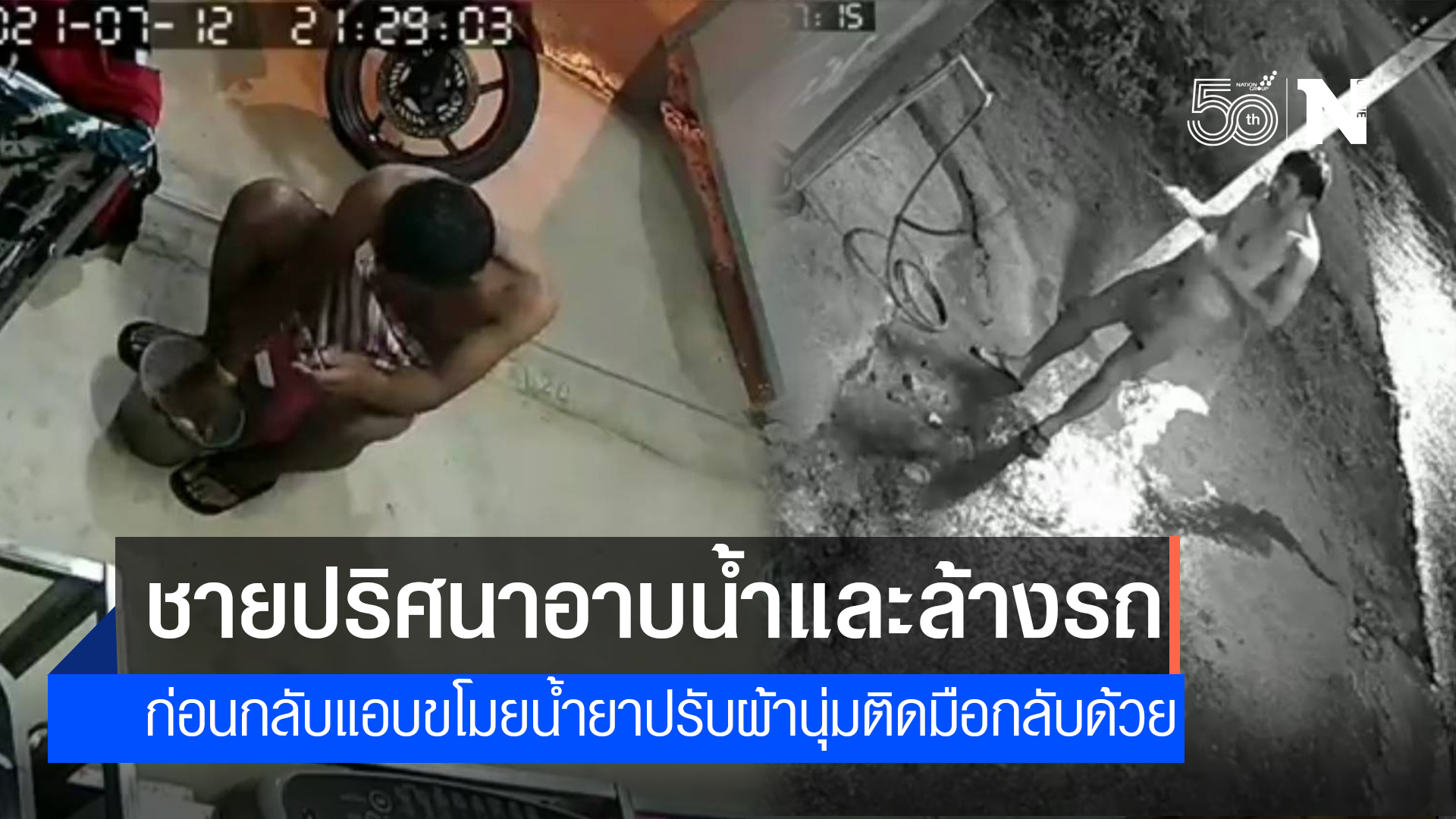 นางขันทอง โปธาพันธ์ เจ้าของร้าน กล่าวว่า ตนได้เปิดบริการเครื่องซักผ้าหยอดเหรียญ 24 ชั่วโมง มีเครื่องซักผ้าทั้งหมด 5 เครื่อง ซึ่งเหตุการณ์ดังกล่าวเกิดขึ้นเมื่อกลางดึกของคืนวันที่ 12 กรกฎาคม ที่ผ่านมา ขณะนั้นฝนกำลังตกหนักตนได้ยินเสียงปั๊มน้ำภายในบ้านทำงานจึงคิดว่าลูกค้ามาใช้บริการซักผ้า แต่สงสัยว่าช่วงนั้นฝนกำลังตกลงมา ประกอบกับดึกแล้วชาวบ้านหลังไหนจะมาซักผ้า ตนจึงเปิดดูกล้องวงจรปิดพบชายคนดังกล่าว สวมผ้าขาวม้าผืนเดียวนั่งซักผ้า ล้างรถจักรยานยนต์ที่นำมาจอดและอาบน้ำ จนเสร็จและขโมยของในร้านออกไป แต่ไม่กล้าออกไปว่ากล่าวชายคนดังกล่าวเนื่องจากกลัวจะถูกทำร้าย