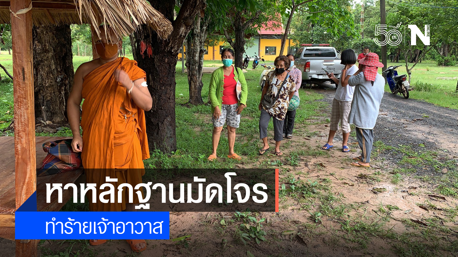 โดยวันนี้เจ้าหน้าที่ตำรวจมาพบว่าด้านหลังของกุฏิ มีชาวบ้านไปพบเครื่องคอมพิวเตอร์โน๊ตบุ๊ก จำนวนหนึ่งเครื่อง ที่โจรใจบาปทำตกหล่นเอาไว้จึงเก็บมอบให้เจ้าหน้าที่ตำรวจไว้เป็นหลักฐาน พร้อมกับรองเท้าแตะแบบสวมสีดำ จำนวนหนึ่งคู่ตกบริเวณกุฎิดังกล่าว สอบถามชาวบ้านไม่ทราบเป็นของใคร เจ้าหน้าที่ตำรวจจึงเก็บไปเป็นหลักฐานด้วยเช่นกัน ขณะที่พระครูแม้ว่ายังหวาดหวั่นอยู่แต่ก็ได้ยืนยัน ขณะที่ต่อสู้กันทางเสียงพูดลักษณะท่าทาง เป็นคนที่พระเอ่ยชื่อออกไปตั้งแต่แรกคือ นายโทน เพราะก่อนหน้านี้ได้มาเป็นพี่เลี้ยงในการบวชเณร ในช่วงเดือนเมษายน 2564 พร้อมกับมาอาสาเป็นโยมอุปัฏฐากพระครูอยู่ที่วัด หลังจากจบโครงการบวชเณรก็ได้ให้กลับไปอยู่บ้าน แต่ยังวนเวียนมาขอเงินอยู่บ่อย ๆ ครั้งละ 200 - 300 บาท ล่าสุดก่อนเกิดเหตุ 10 วัน บุกเข้ามาขอเงินช่วงสี่ทุ่ม แต่พระครูไม่ให้ ซึ่งอาจเป็นชนวนเหตุ มาบุกปล้นวัดถึง 3 วันติดๆ กันในครั้งนี้