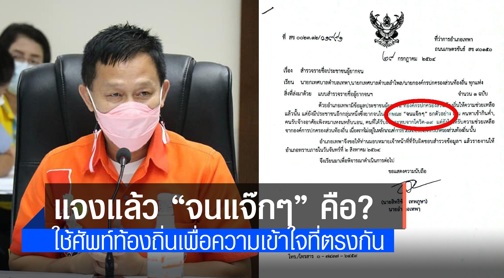 30 กรกฎาคม 2564 จากกระแสดราม่าหนังสือที่นายสิทธิชัย เทพภูษา นายอำเภอเทพา จ.สงขลาส่งไปยังผู้บริหารองค์กรปกครองส่วนท้องถิ่น ให้สำรวจรายชื่อประชาชนผู้ยากจนในพื้นที่ของตัวเอง เมื่อวันที่ 29 กรกฎาคม 2564 ที่ผ่านมา และให้รายงานให้อำเภอทราบภายในวันที่ 2 สิงหาคม 2564 ซึ่งประเด็นที่กลายเป็นดราม่าในหนังสือดังกล่าวก็คือ ด้วยอำเภอเทพามีข้อมูลประชาชนผู้ยากจน ที่องค์กรปกครองส่วนท้องถิ่นให้ความช่วยเหลือแล้วนั้น แต่ยังมีประชาชนอีกกลุ่มหนึ่งซึ่งยากจนในลักษณะ “จนแจ๊กๆ” จนทำให้เกิดกระแสดราม่าในโลกโซเชียล เนื่องจากคำว่า “จนแจ๊กๆ” นั้น เป็นภาษาพูดของท้องถิ่นภาคใต้ที่นำมาใช้ในหนังสือราชการ
