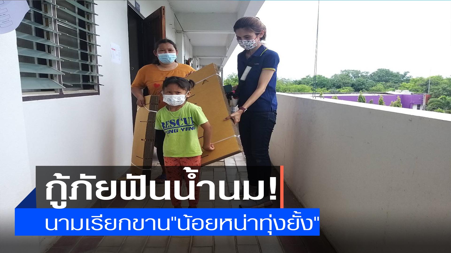 “ลูกสาว เรียนอยู่ชั้นอนุบาล 3 โรงเรียนเทศบาลท่าอิฐ ปกติติดตามออกเหตุช่วงวันหยุด หลังเลิกเรียน ช่วยระบาดโควิด-19 ไม่ได้ไปโรงเรียน แต่หลังเรียนออนไลน์ ทำการบ้านและใบงานที่คุณครูมอบหมาย จะขอตามพ่อแม่ ออกรับบริจาคสิ่งของช่วยเหลือครอบครัวผู้ติดเชื้อ และผู้ที่กักตัว 14 วัน และช่วยจัดสถานที่ ประกอบเตียงกระดาษ ในการจัดตั้งโรงพยาบาลสนาม ออกพื้นที่จะอยู่ในการดูแลของพ่อแม่ และพี่ๆอาสากู้ภัย ไม่ได้ปล่อยให้ทำเอง สวมหน้ากากอนามัย อย่างน้อยช่วยสร้างเสริมประสบการณ์ให้ลูก ได้รู้จักการช่วยเหลือสังคม มีน้ำใจต่อคนอื่น และมีความรับผิดชอบ แต่ไม่ให้ทิ้งการเรียน และยังคงร้องไห้ เมื่อ หิวนม อยากทานขนม ตามประสาเด็ก” แม่น้องน้อยหน่ากล่าว