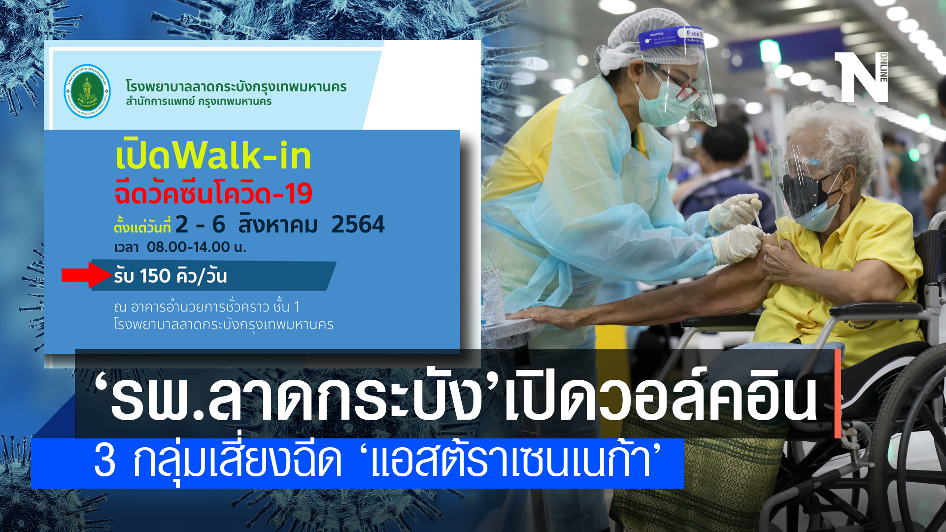 2 สิงหาคม 2564 โรงพยาบาลลาดกระบัง เผยแพร่ข่าวการเปิดให้ 3 กลุ่มเสี่ยง วอล์คอินฉีดวัคซีน ระหว่างวันที่ 2-6 สิงหาคม 2564 โพสต์ลงเพจเฟซบุ๊ก "โรงพยาบาลลาดกระบังกรุงเทพมหานคร สำนักการแพทย์" มีเนื้อหาระบุว่า...