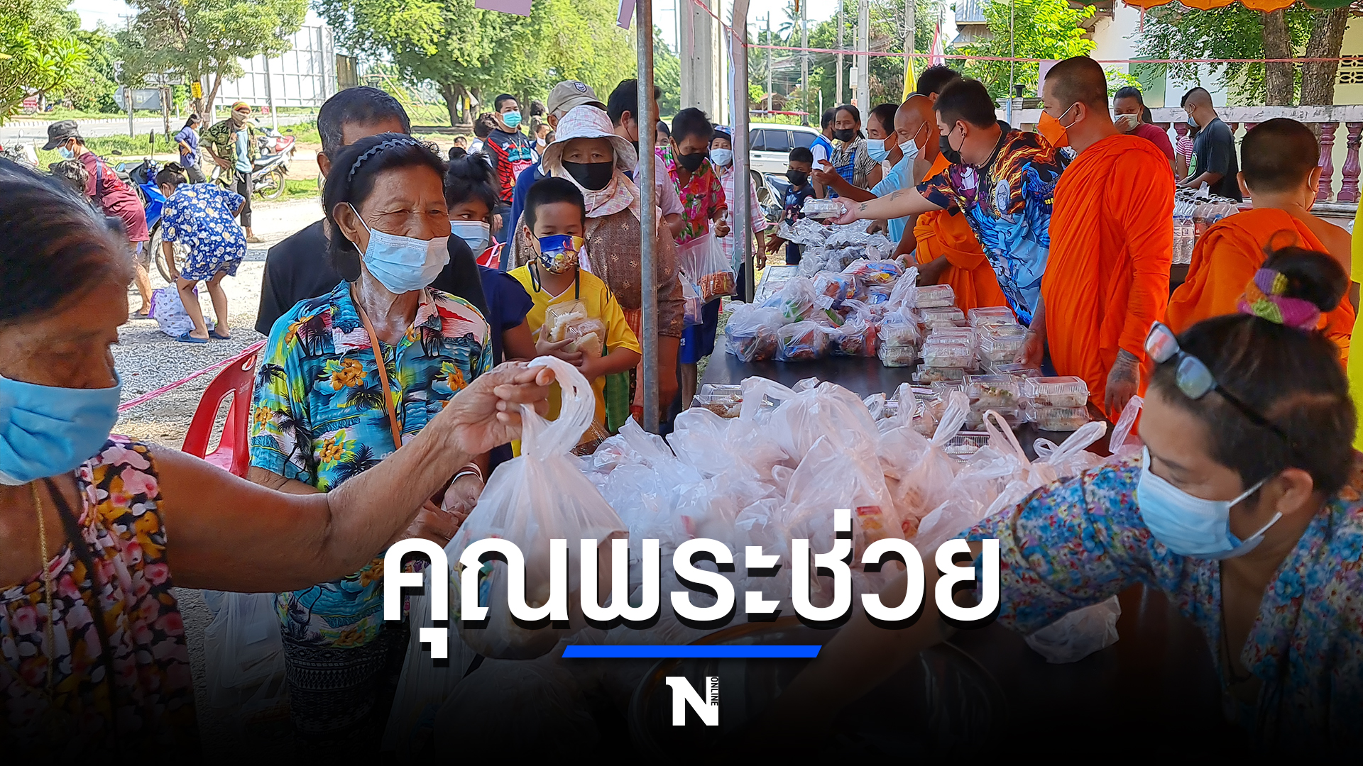 เมื่อเวลา 09.00 น. วันที่ 7 ส.ค. ผู้สื่อข่าวรายงานว่า ที่วัดบ้านป่า หมู่ 6 ต.บ้านป่า อ.เมือง จ.พิษณุโลก พระครูสุเมธ ธรรมะโสภณ เจ้าคณะตำบลบ้านป่า พระครูเทียบเท่าเจ้าคณะอำเภอพิเศษ พร้อมด้วย พระอธิการสมใจ กตสาโร หรือพระอาจารย์หมี เจ้าอาวาสวัดบ้านป่า และพระลูกวัดกับคณะลูกศิษย์ ร่วมกันแจกอาหาร น้ำดื่ม ผลไม้ หน้ากากอนามัย ให้แก่ญาติโยมในพื้นที่ที่ได้รับความเดือดร้อนจากสถานการณ์การแพร่ระบาดของไวรัสโควิด 19 ซึ่งทางวัดบ้านป่าได้จัดทำโรงทานทำอาหารโดยมีแม่ครัวจิตอาสาในชุมชนมาช่วยกันทำกับข้าว เช่น ข้าวผัดกะเพรา ข้าวมันไก่ ก๋วยจั๊บ นำไปแจกฟรีให้กับชาวบ้านประมาณ 200 ชุด ในวันนี้