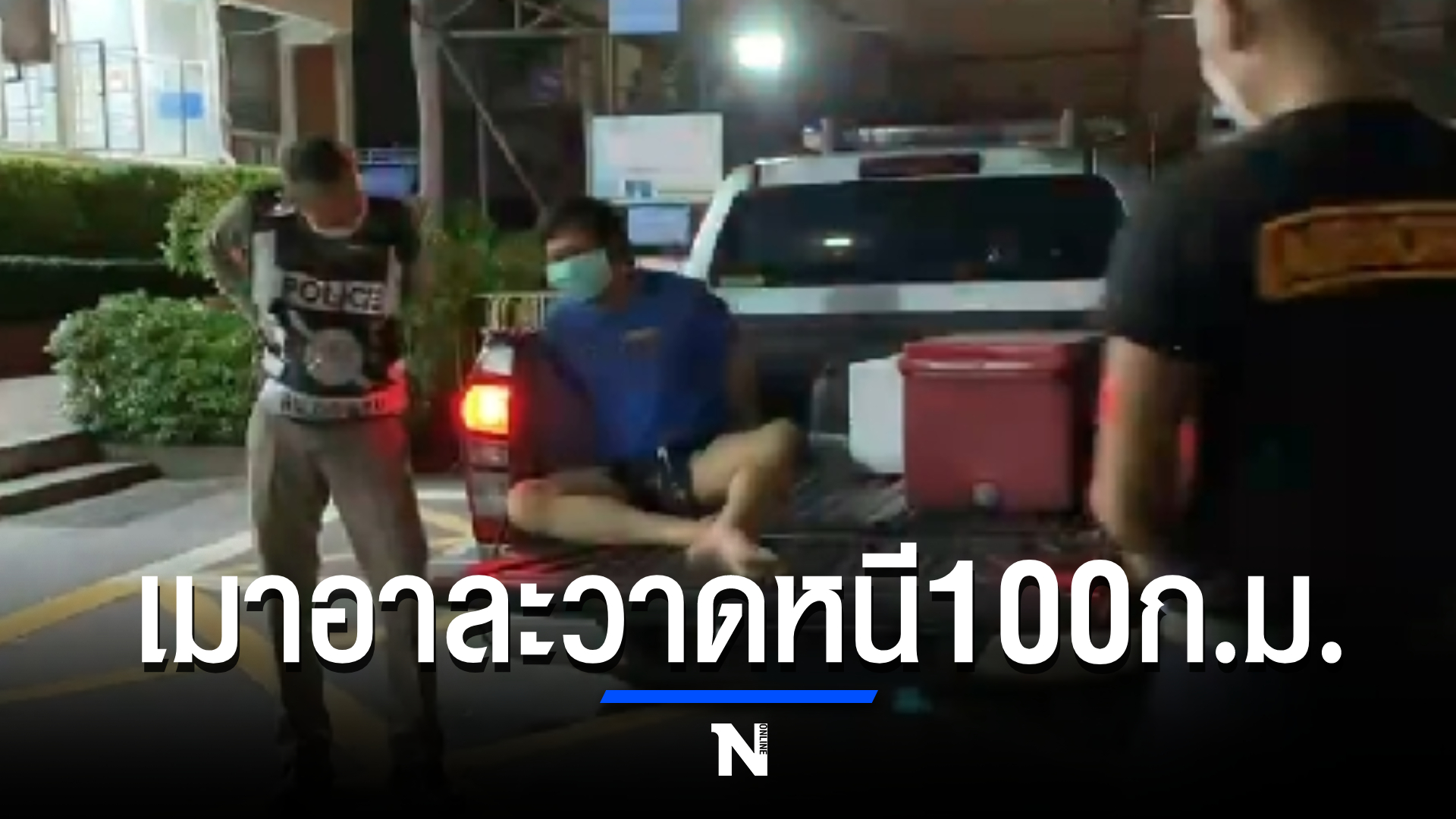 จากนั้นได้หยิบกระเป๋าเครื่องมือทางการแพทย์ขึ้นรถยนต์ฮอนด้า HRV หลบหนี พร้อมท้าให้เจ้าหน้าที่ขับไล่ตามไป เนื่องด้วยกระเป๋าเครื่องมือทางการแพทย์จำเป็นต่อการปฏิบัติหน้าที่ช่วยเหลือผู้ป่วย เจ้าหน้าที่จึงตัดสินใจไล่ตามตั้งแต่ย่านลาดปลาเค้า ไปจนรามคำแหง ต่อเนื่องร่มเกล้า พัฒนาการ คลองตัน ประตูน้ำ ห้าแยกลาดพร้าว เกษตรนวมินทร์ จนถูกสกัดได้ที่ถนนรามอินทรา
