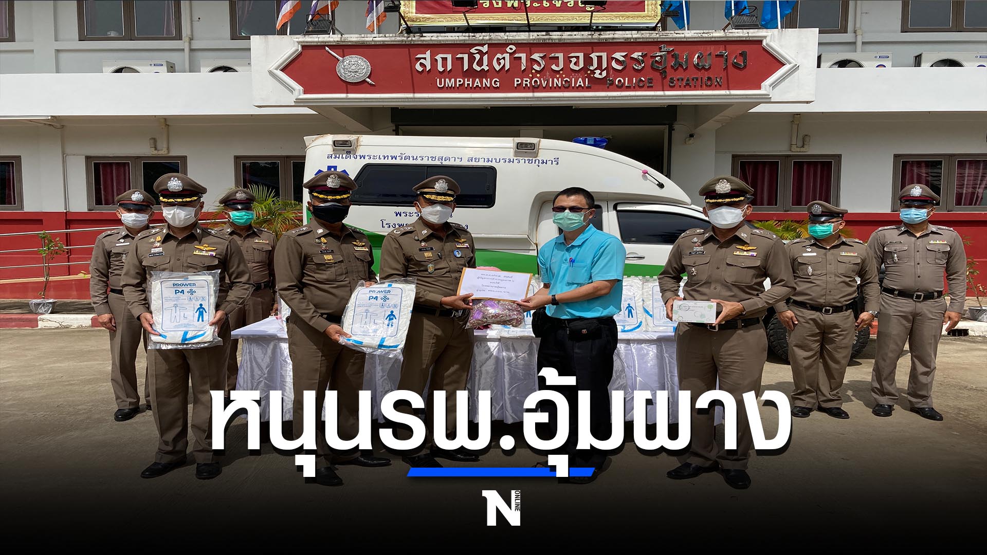 ทั้งนี้เพื่อตรวจเยี่ยมและกำชับเจ้าหน้าที่ตำรวจให้เข้มงวดกวดขันการปฏิบัติหน้าที่ในช่วงสถานการณ์การระบาดของโรคไวรัสรัสโควิด-19 และมอบเงิน จำนวน 360,000 บาท พร้อมอุปกรณ์สนับสนุนการแพทย์ เช่น ชุด PPE , ชุดตรวจโควิด-19 , ยาสมุนไพรฟ้าทะลายโจร ให้กับโรงพยาบาลอุ้มผาง โดยมีนายแพทย์วรวิทย์ ตันติวัฒนทรัพย์ ผู้อำนวยการโรงพยาบาลอุ้มผาง เป็นผู้รับมอบ เพื่อนำไปใช้ประโยชน์ทางการสาธารณสุขในพื้นที่ อ.อุ้มผาง