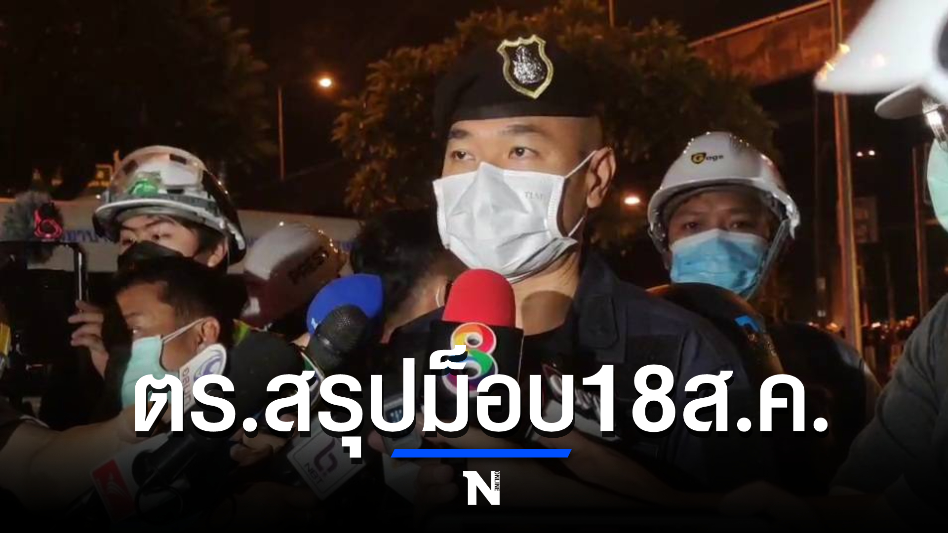 วันนี้ (18 ส.ค.) เวลา 21.00 น. พ.ต.อ.กฤษณะ พัฒนเจริญ รองโฆษกสำนักงานตำรวจแห่งชาติ กล่าวถึงสรุปภาพรวมการชุมนุมวันนี้ว่า ตั้งแต่เวลา 16.00 น ที่กลุ่มทะลุฟ้าได้มีการนัดหมายทำกิจกรรมทางการเมืองที่อนุสาวรีย์ประชาธิปไตย กลุ่มผู้ชุมนุมที่มาทำกิจกรรมได้ทยอยเข้าพื้นที่มีการนำหุ่นฟาง จุดไฟเผา จนกระทั่งเวลา 17.00 น. มีกลุ่มผู้ชุมนุมบางส่วนได้เดินทางออกจากพื้นที่อนุสาวรีย์ประชาธิปไตย แยกตัวมาทำกิจกรรมต่อที่บริเวณ สามเหลี่ยมดินแดงจนถึงแยกดินแดงซึ่งเป็นพื้นที่เปราะบาง