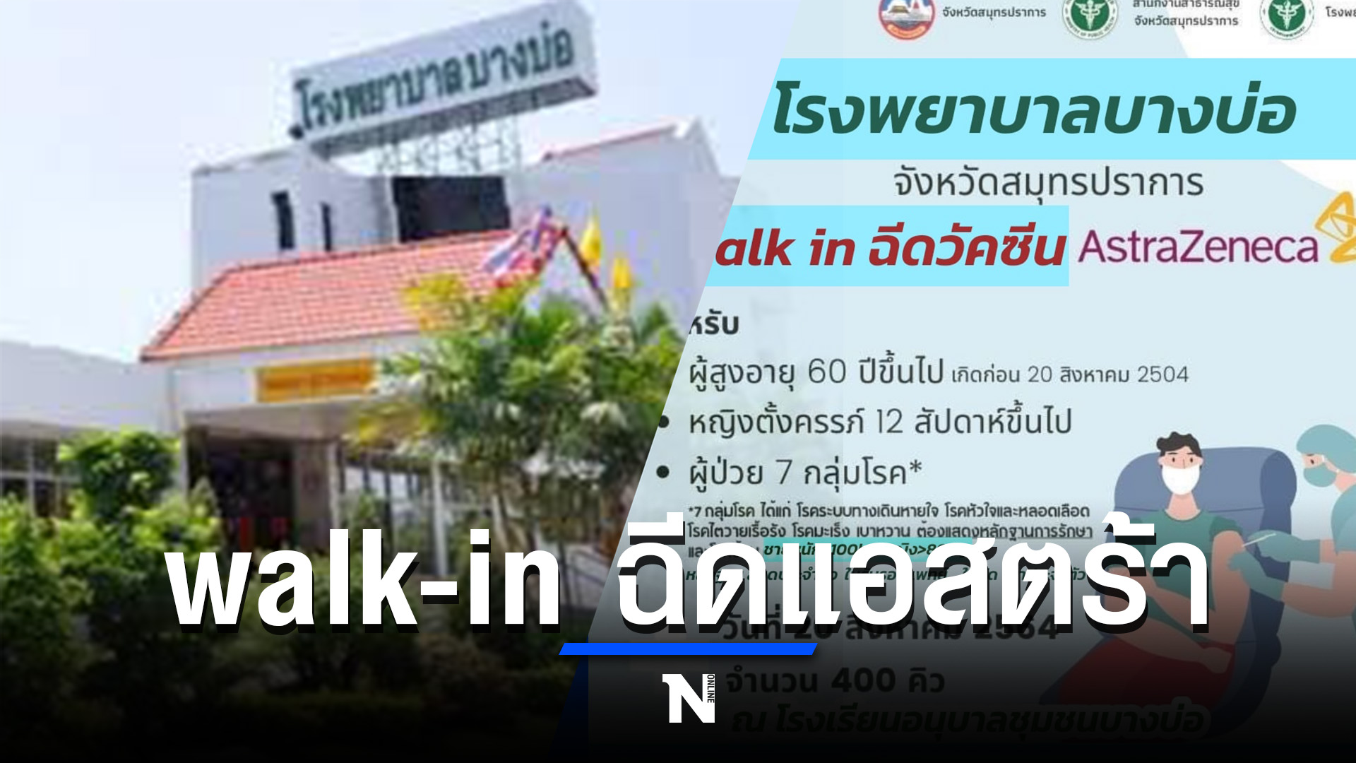 วันที่ 19 สิงหาคม 2564 ประชาสัมพันธ์ โรงพยาบาลบางบ่อเปิด Walk in ฉีดวัคซีนแอสตร้าเซนเนก้า เข็มที่ 1 วันที่ 20 สิงหาคม 2564 ในกลุ่มเป้าหมายต่อไปนี้