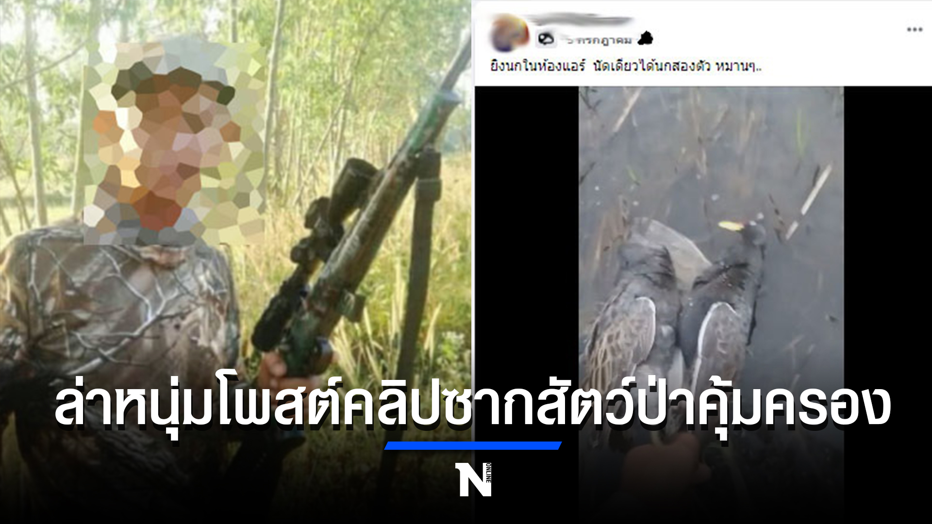 เจ้าหน้าที่จึงได้สืบสวนจนทราบตัวผู้ใช้เฟซบุ๊กดังกล่าว โดยในระหว่างวันที่ 5 กรกฎาคม 2564 ถึง วันที่ 8 สิงหาคม 2564 ได้มีการโพสต์ภาพและคลิปวิดีโอแสดงซากนกอีลุ้ม 4 ซาก ซึ่งเป็นสัตว์ป่าคุ้มครองจำพวกนก ลำดับที่ 845 ซากไก่ป่า 1 ซาก สัตว์ป่าคุ้มครองจำพวกนก ลำดับที่ 3 และ ซากนกเป็ดแดง 21 ซาก ซึ่งเป็นสัตว์ป่าคุ้มครองจำพวกนก ลำดับที่ 886 รวมทั้งสิ้น จำนวน 21 ซาก ซึ่งได้มาจากการล่าด้วยปืนยาวขนาด .22 LR ติดลำกล้องขยาย และมีการโพสต์ขายซากนกเป็ดแดงดังกล่าวอีกด้วย