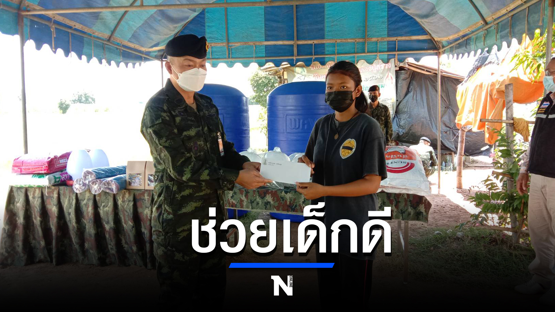 นอกจากนี้ ยังได้มอบทุนการศึกษา จำนวน 5,000 บาท และทุนเรียนภาษาอังกฤษครูนะออนไลน์ จำนวน 2 ทุน ทุนละ 8,000 บาทให้ด้วย เพื่อช่วยเหลือบรรเทาความเดือดร้อน ตามนโยบาย “กองทัพบกช่วยเหลือประชาชน” ซึ่งน้องทั้งสองคนและครอบครัวต่างรู้สึกดีใจ และได้กล่าวแสดงความขอบคุณเจ้าหน้าที่ทหารที่เข้ามาให้การช่วยเหลือ โดยเด็กทั้งสองคนสัญญาว่า จะตั้งใจเรียนและเป็นเด็กดี