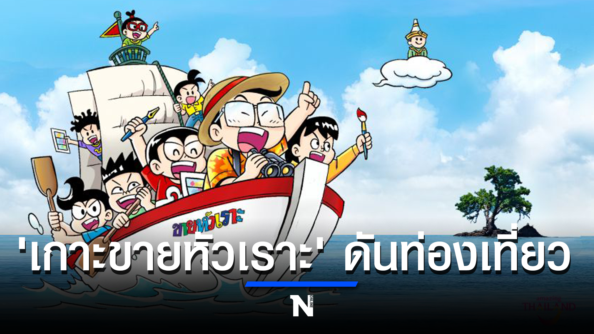 จุดเริ่มต้นของความร่วมมือมาจากความเข้ากันพอดีของสถานที่ท่องเที่ยวในจังหวัดตราด กับภาพจำของขายหัวเราะ ซึ่งเป็นแก๊กติดเกาะในหนังสือการ์ตูน นักท่องเที่ยวจึงพากันเรียกเกาะนี้ว่า เกาะขายหัวเราะ จนกลายเป็นหนึ่งในแลนด์มาร์คสำคัญของจังหวัดตราด