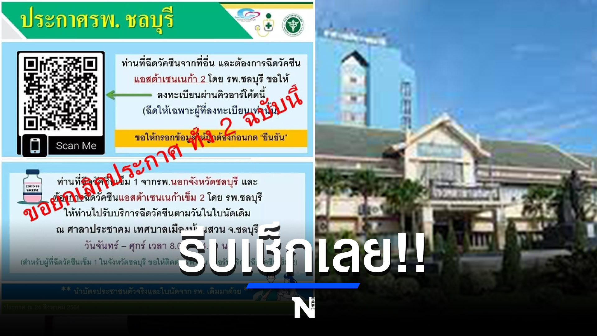 จากกรณีที่ โรงพยาบาลชลบุรี ได้ประกาศแจ้งเรื่อง "ฉีดวัคซีน" โควิด-19 เข็ม 2 โดยข้อความระบุว่า ท่านที่ฉีดวัคซีนจากที่อื่น และต้องการฉีดวัคซีน แอสตร้าเซนเนก้า 2 โดย รพ.ชลบุรี ขอให้ลงทะเบียนผ่านคิวอาร์โค้ดนี้ (ฉีดให้เฉพาะผู้ที่ลงทะเบียนเท่านั้น) ขอให้กรอกข้อมูลให้ถูกต้องก่อนกด "ยืนยัน"