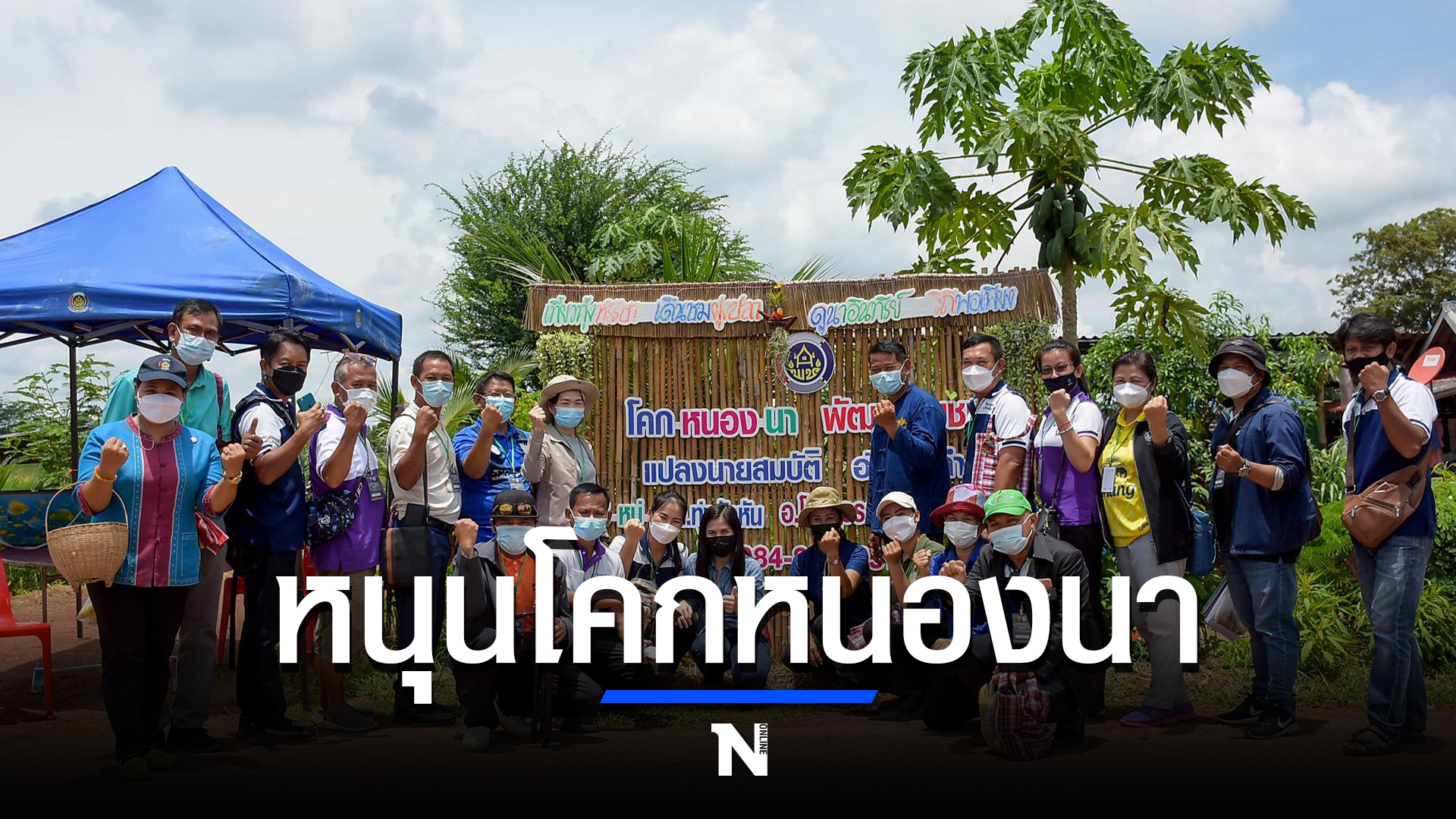 ด้านนายชาตรี ฉิมพรัตน์ นายอำเภอโนนสุวรรณ กล่าวว่า โคกหนองนาโมเดล ของอำเภอโนนสุวรรณปัจจุบันมีอยู่ 20 กว่าแปลง บางส่วนอยู่ระหว่างดำเนินการ ซึ่งผู้ที่เข้าร่วมโครงการโคกหนองนาก็จะสามารถพึ่งพาตนเองด้วยการลดรายจ่ายสามารถเก็บพืชผักมาบริโภคในครัวเรือน เหลือก็สามารถนำไปขายสร้างรายได้ ถือเป็นโครงการที่สร้างความยั่งยืนทำให้เกษตรกรมีคุณภาพชีวิตความเป็นอยู่ที่ดีขึ้น ลดการอพยพเคลื่อนย้ายไปทำงานนอกพื้นที่ได้อีกด้วย
