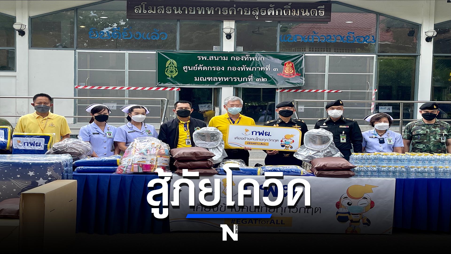 จากความร่วมมือร่วมใจแก้ไขสถานการณ์การแพร่ระบาดของโรคโควิด-19 ของทุกภาคส่วน ได้แสดงความมีน้ำใจเอื้อเฟื้อเผื่อแผ่ช่วยเหลือกันเต็มกำลังขีดความสามารถ เป็นผลส่งให้สถานการณ์ในพื้นที่จังหวัดลำปาง มีแนวโน้มที่ดีขึ้นตามลำดับ แต่ต้องอยู่บนพื้นฐานของการเตรียมพร้อมอย่างเต็มที่ หากเมื่อมีสถานการณ์ที่ไม่พึงประสงค์เกิดขึ้น ซึ่งทางกฟผ.แม่เมาะ ลำปาง โดยนายมาโนช ชูชาติวรรณกุล ผู้ช่วยผู้ว่าการเหมืองแม่เมาะ พร้อมด้วยนายประกอบ ปะระมะ หัวหน้ากองชุมชนสัมพันธ์โรงไฟฟ้าแม่เมาะและคณะ กฟผ.แม่เมาะ ได้เดินทางมามอบเตียงกระดาษ ที่นอน หมอน ผ้าห่มและชุดของใช้ส่วนตัว จำนวน 20 ชุด, น้ำดื่ม 50 แพ็ค หมวกป้องกัน PAPR พร้อมชุดกรองจ่ายอากาศบริสุทธิ์ จำนวน 2 ชุด ให้กับโรงพยาบาลค่ายสุรศักดิ์มนตรี สำหรับใช้การในกิจการของโรงพยาบาลค่ายสุรศักดิ์มนตรีและโรงพยาบาลสนามกองทัพบก ศูนย์คัดกรองกองทัพภาคที่ 3 มณฑลทหารบกที่ 32
