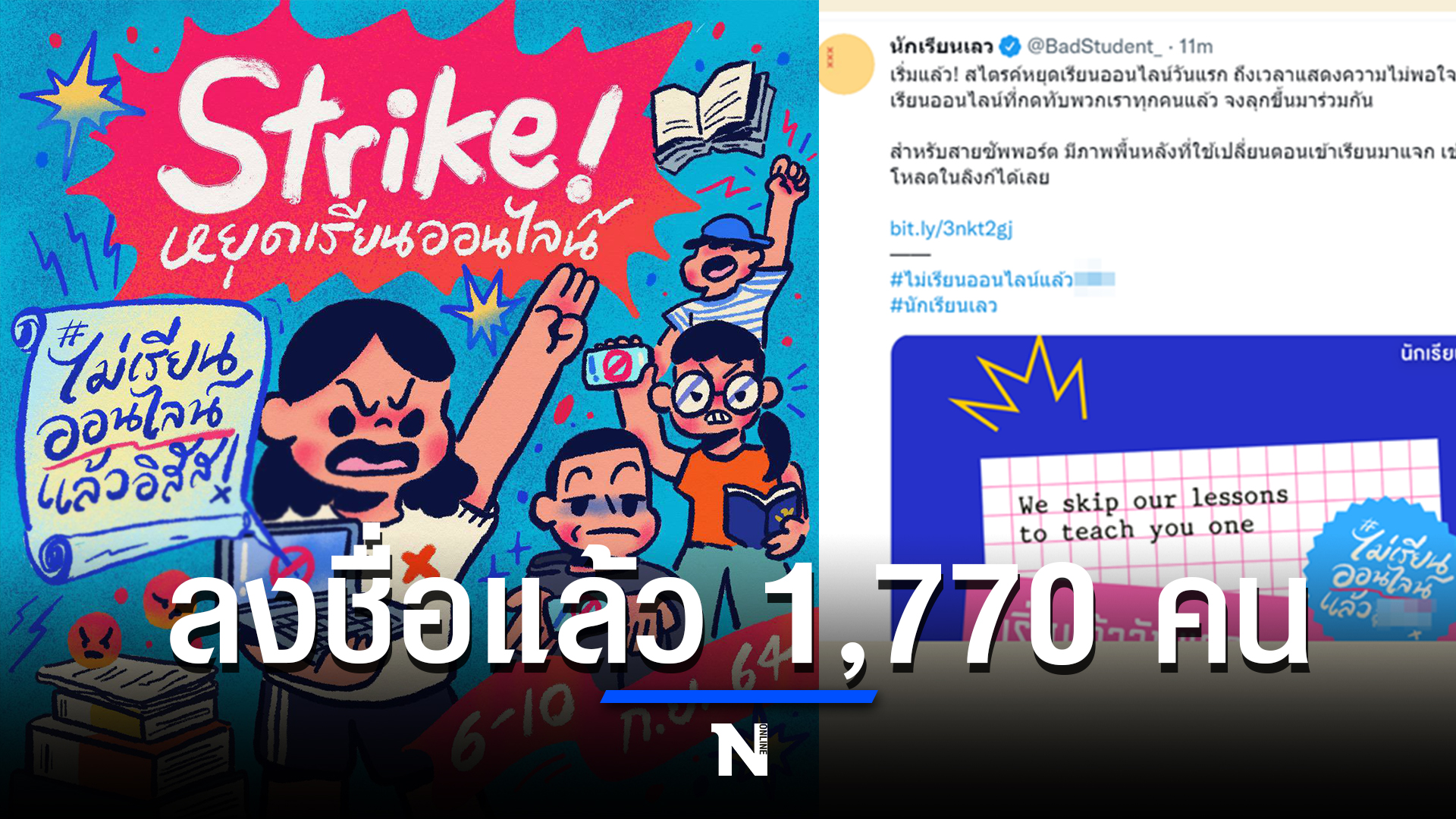 "เริ่มแล้ว! สไตรค์หยุดเรียนออนไลน์วันแรก ถึงเวลาแสดงความไม่พอใจต่อการเรียนออนไลน์ที่กดทับพวกเราทุกคนแล้ว จงลุกขึ้นมาร่วมกัน"