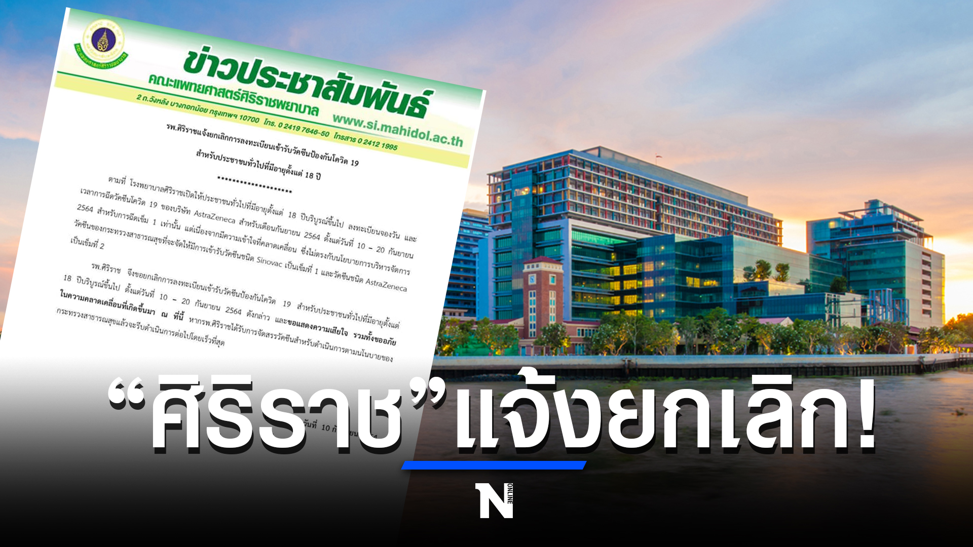 ทั้งนี้ทาง โรงพยาบาลศิริราชเปิด จึงขอยกเลิกการลงทะเบียนเข้ารับวัคซีนป้องกันโควิด 19 สำหรับประชาชนทั่วไปที่มีอายุตั้งแต่ 18 ปีบริบูรณ์ขึ้นไป ตั้งแต่วันที่ 10 – 20 กันยายน 2564 ดังกล่าว