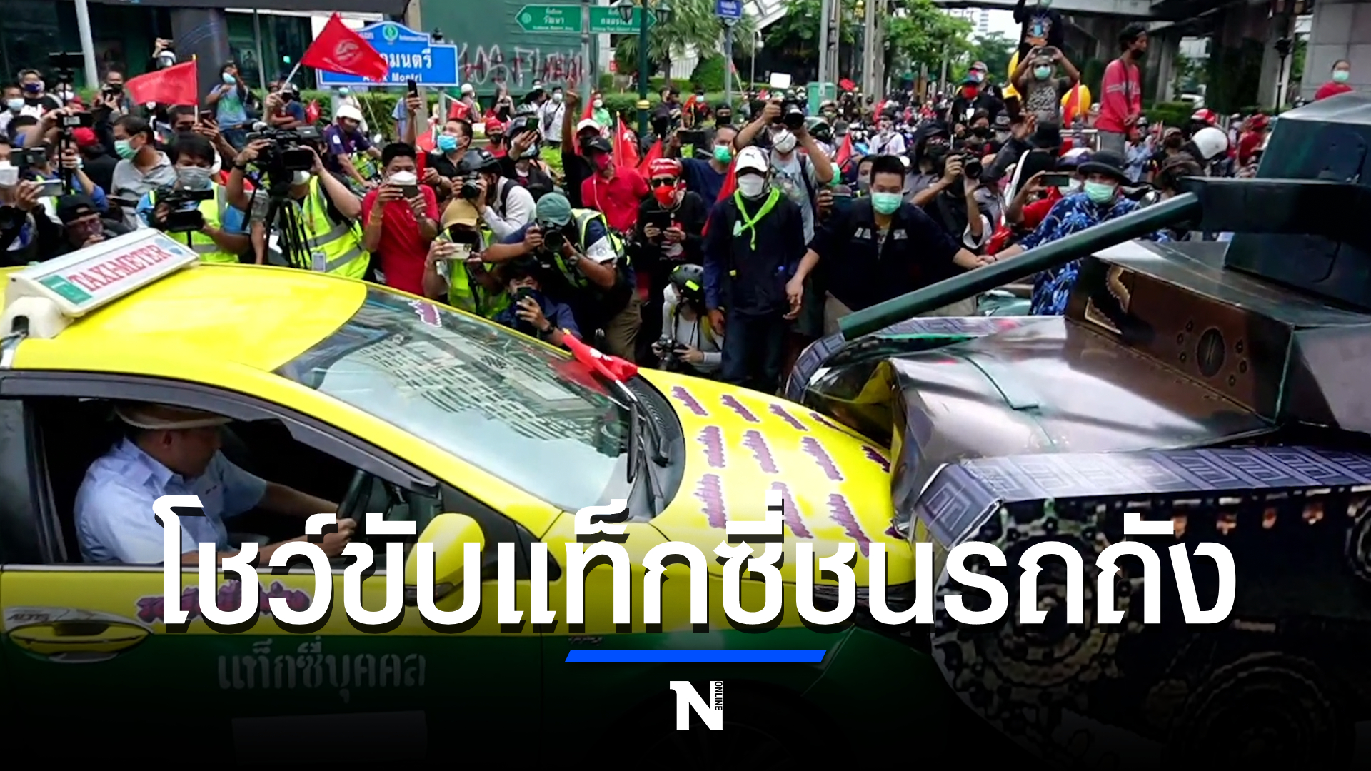 จากนั้นนายณัฐวุฒิ ได้เปลี่ยนชุดจากเสื้อยืดสีแดงเป็นเสื้อโชเฟอร์แท็กซี่ ก่อนจะขับรถแท็กซี่ชชนโมเดลรถถังจำลอง เพื่อเป็นการแสดงเชิงสัญลักษณ์การขับรถยนต์ชนรถถังในการชุมนุมครั้งนี้ ก่อนจะปล่อยขบวนรถยนต์เริ่มกิจกรรมคาร์ม็อบมุ่งหน้าไปยังอนุสาวรีย์ประชาธิปไตย