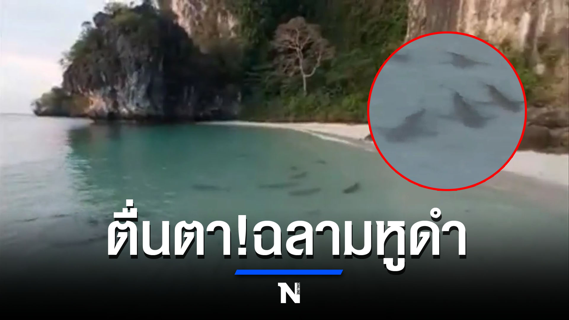 ตื่นตา! ฝูงฉลามหูดำกว่า 30 ตัว โผล่ว่ายหากินหมู่เกาะห้อง หลังหายไปนาน 4 เดือน