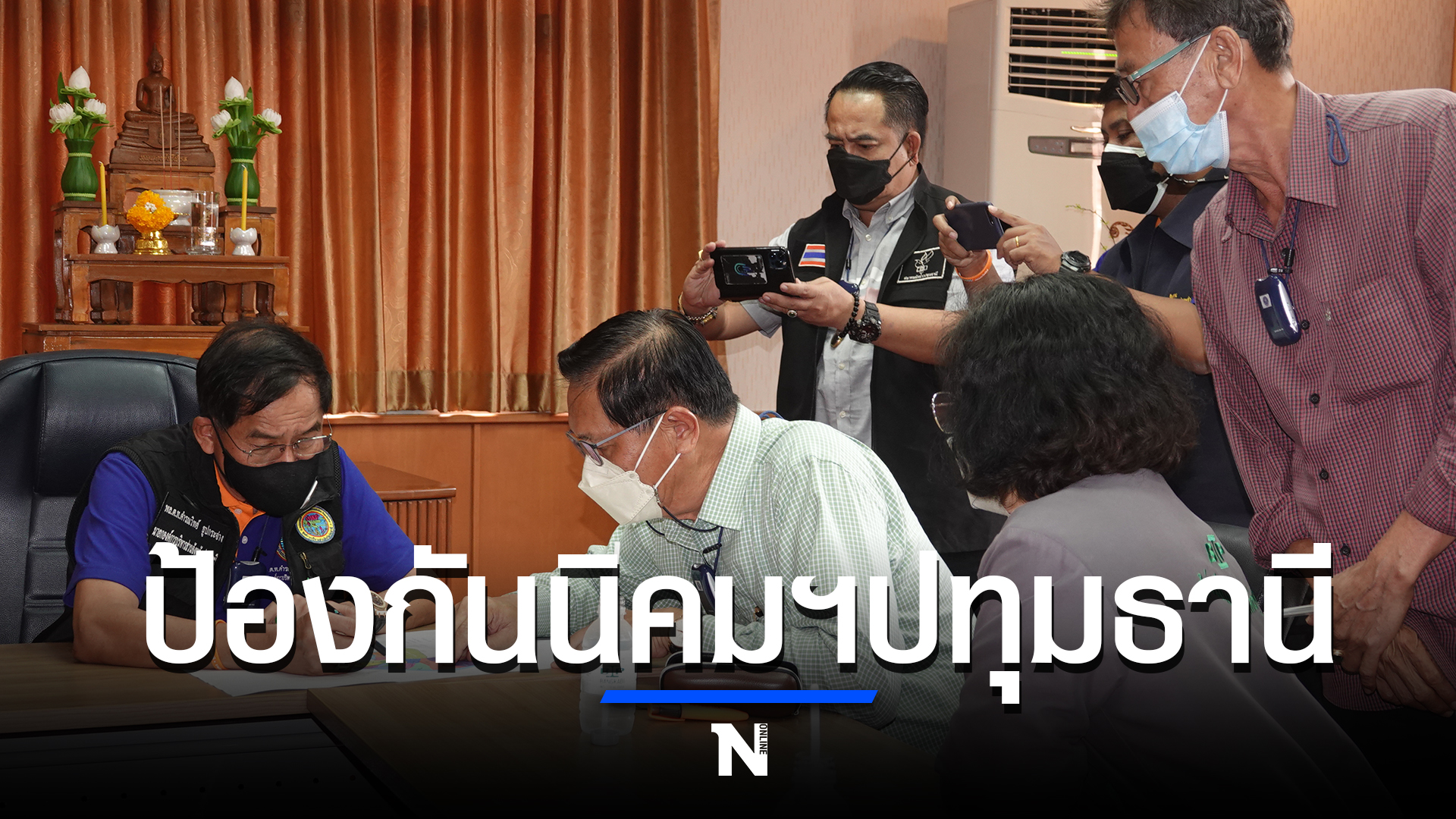 ภายในที่ประชุมมี มีผู้บริหารบริษัทและผู้ประกอบการในนิคนอุสาหกรรมบางกะดี เช่นบริษัท โตชิบา , โซนี ,บีกริม บีไอพีเพาเวอร์, เอสวีไอ เข้าร่วมรับฟังแนวทางการป้องกันขององค์การบริหารส่วนจังหวัดปทุมธานี ที่ร่วมกับท้องถิ่นต่างๆ เพื่อเสริมสร้างความมั่นใจให้กับผู้ประกอบการชาวต่างชาติและคนไทย ซึ่งหลังจากรวมฟังแล้ว ผู้บริหารต่างเข้าใจและมีความมั่นใจความปลอดภัยในการทำธุรกิจที่จังหวัดปทุมธานี จากนั้นลงพื้นที่ดูสถานการณ์น้ำที่ประตูระบายน้ำวัดศาลเจ้า ที่อาคารควบคุมสูบน้ำคลองบางหลวงเชียงราก โครงการชลประทานปทุมธานี