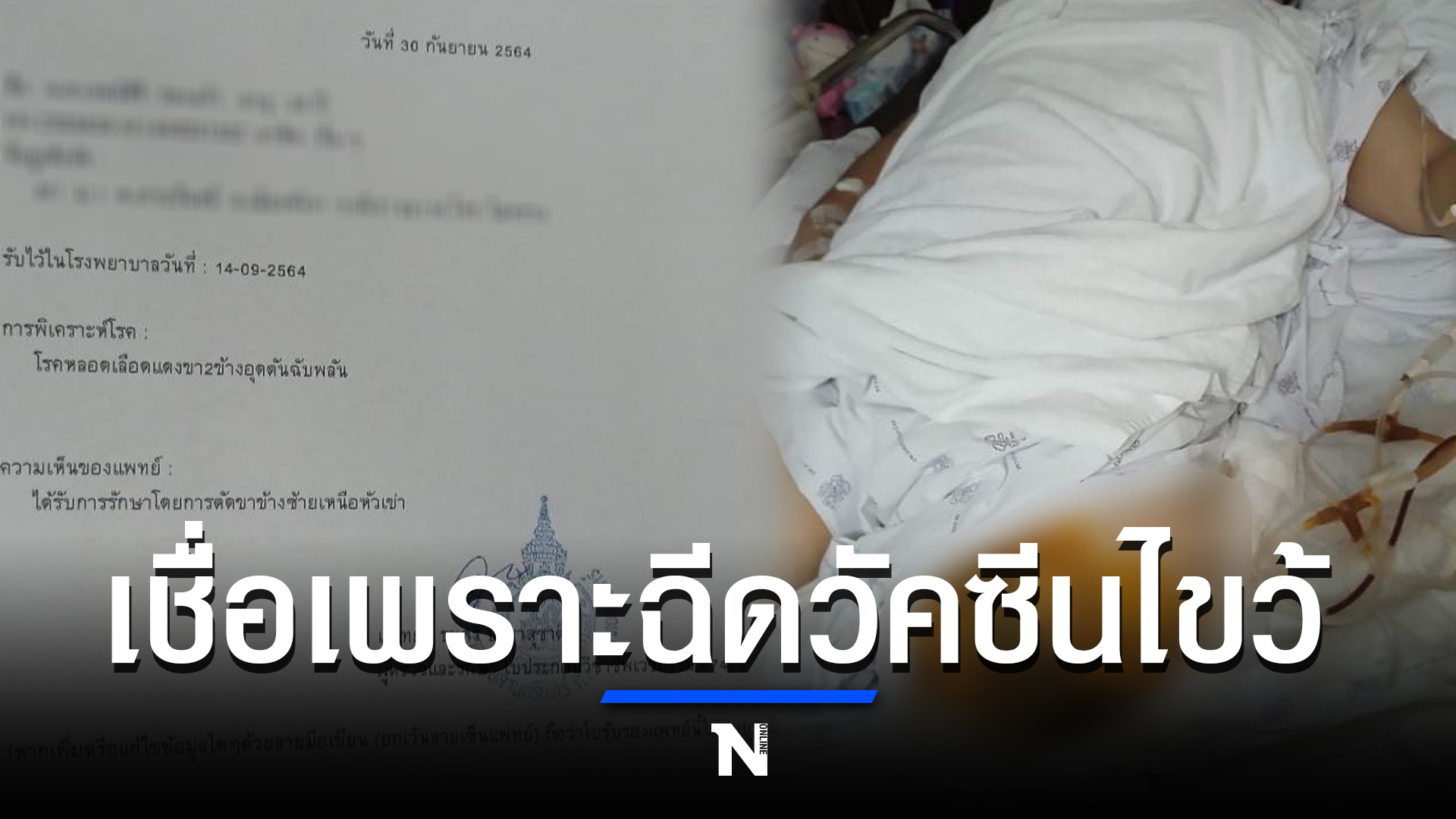 จึงรีบไปโรงพยาบาลพังงา ทางโรงพยาบาลพังงาส่งตัวไปเอ็กซเรย์เส้นเลือดที่โรงพยาบาลสุราษฎร์ธานี แพทย์แจ้งว่ามีเส้นเลือดอุดตัน และได้ทำการผ่าตัดด่วนและพบว่ามีเนื้อตายต้องส่งตัวไปที่ผ่าตัดอีกครั้งที่โรงพยาบาลกระบี่ เมื่อกลับมาอาการไม่ดีขึ้น จึงได้ส่งตัวไปรักษาต่อที่โรงพยาบาลสงขลานครินทร์ และล่าสุดก็ถูกตัดขาข้างซ้ายเหนือเข่าไป1ข้าง ซึ่งทางญาติๆต่างก็เชื่อว่าเป็นผลจากการฉีดวัคซีนแน่นอน เพราะเขาไม่เคยมีโรคประจำตัวมาก่อน