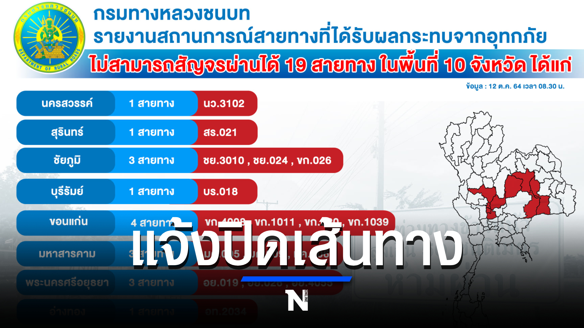 ไม่สามารถสัญจรผ่านได้ 19 สายทาง แบ่งเป็น