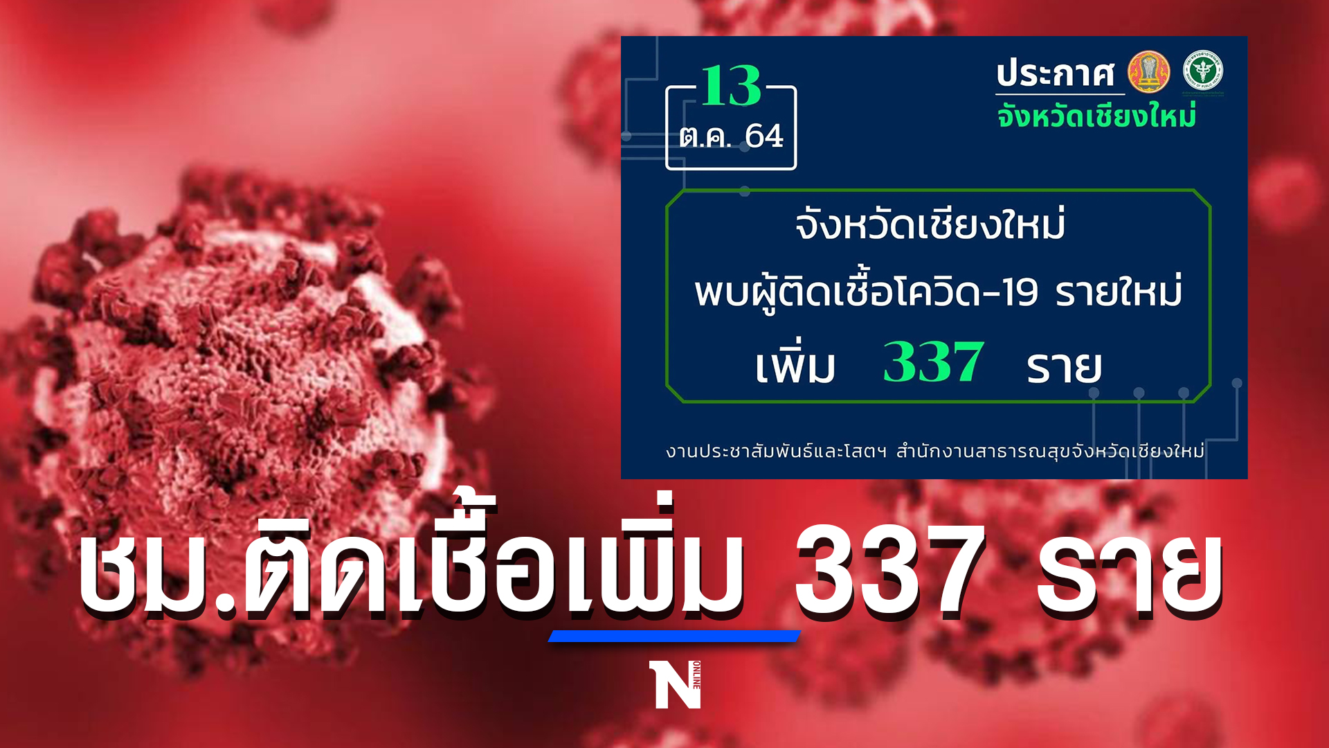 สำนักงานประชาสัมพันธ์จังหวัดเชียงใหม่ รายงานสถานการณ์ โควิด-19 ในวันนี้ พบว่ามีจำนวนยอด ผู้ติดเชื้อรายใหม่พุ่งสูงถึง 337 ราย โดยเป็นผู้ติดเชื้อในจังหวัดถึง 333 ราย อีก 4 รายเป็นผู้ติดเชื้อจากต่างจังหวัด ทำให้ขณะนี้ที่ จ.เชียงใหม่ มีผู้ติดเชื้อสะสมตั้งแต่เดือนกรกฎาคม 2564 อยู่ที่ 6,395 ราย