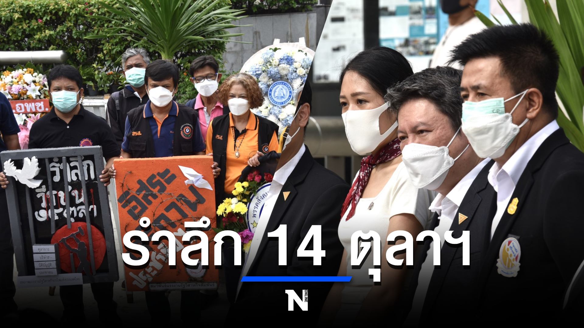 จากนั้นมีพิธีวางพวงมาลา และกล่าวรำลึก โดยมีนายอนุชา นาคาศัย รัฐมนตรีประจำสํานักนายกรัฐมนตรี เป็นผู้แทนนายกรัฐมนตรี วางพวงมาลา และกล่าวสดุดีว่า เหตุการณ์ 14 ตุลา มีความสำคัญอย่างยิ่งต่อประวัติศาสตร์การเมืองไทย เป็นการยึดมั่นในระบอบประชาธิปไตย ที่เป็นระบอบการปกครองที่ประชาชนมีอำนาจสูงสุด