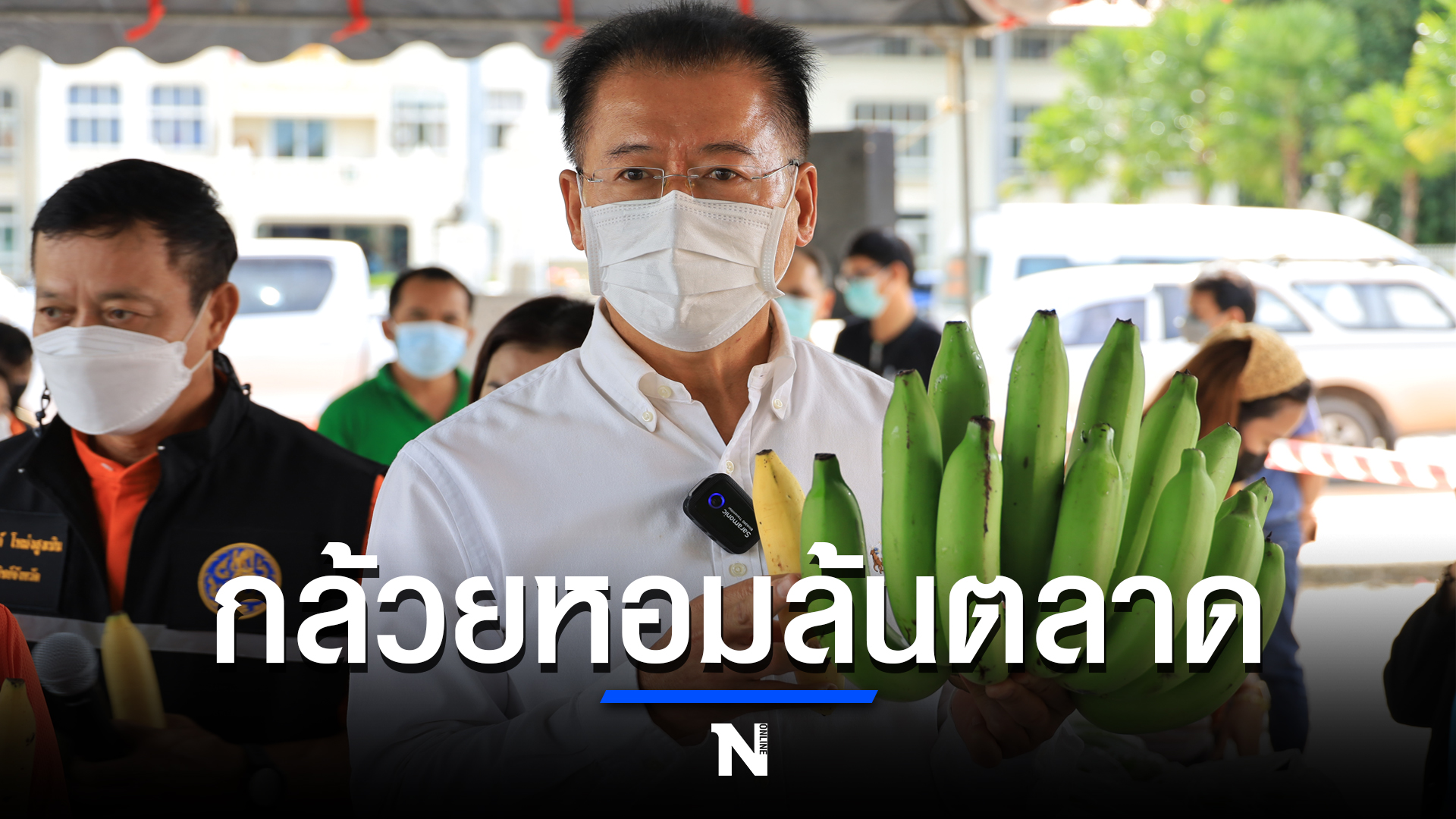 นายวิเชียร จันทรโณทัย ผู้ว่าราชการจังหวัดนครราชสีมา กล่าวว่า ในช่วงนี้ผลผลิตกล้วยหอมทองของจังหวัดนครราชสีมาได้รับผลกระทบจากการแพร่ระบาดของเชื้อไวรัสโควิด-19 เกษตรกรไม่สามารถส่งผลผลิตให้กับคู่ค้าได้ ซึ่งช่วงนี้จนถึงสิ้นเดือนตุลาคม ในพื้นที่จะมีกล้วยหอมทองตกค้างในสวนราว 750 ตัน จึงได้มีการจัดตลาดนัดเพื่อช่วยเหลือเกษตรกร