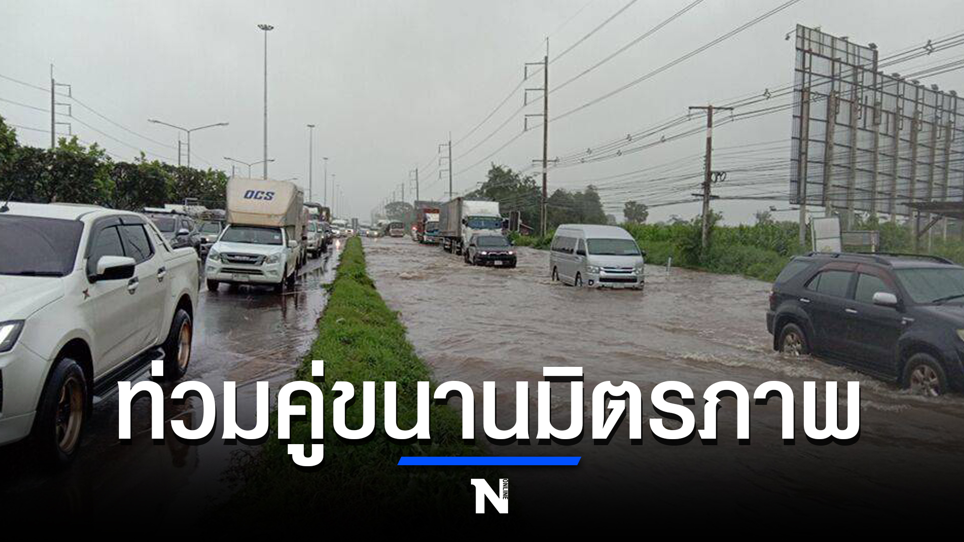 18 ตุลาคม 2564 เวลา 14.00 น. ผู้สื่อข่าวรายงานว่า ภายหลังจากที่เกิดฝนตกลงมาอย่างต่อเนื่องในพื้นที่ จ.นครราชสีมา ส่งผลให้เกิดน้ำไหลหลากเข้าท่วมพื้นผิวจราจรบนถนนมิตรภาพหลายจุด ติดต่อกันเป็นวันที่ 2 แล้ว โดยเฉพาะที่บริเวณหน้าเขตส่งเสริมอุตสาหกรรมนวนคร นครราชสีมา ต.นากลาง อ.สูงเนิน จ.นครราชสีมา ซึ่งมีน้ำป่าจากข้างทางได้ไหลเข้าท่วมพื้นผิวจราจรบนถนนมิตรภาพ ทางคู่ขนานทั้ง 4 เลน ฝั่งขาออกจากตัวเมืองนครราชสีมา โดยมีระดับน้ำสูงกว่า 80 เซนติเมตร เป็นระยะทางยาวกว่า 1 กิโลเมตร รถเล็กไม่สามารถวิ่งเลนคู่ขนานได้ และยังมีรถบรรทุกตกร่องกลางทางคู่ขนาน 1 คันด้วย ทำให้รถยนต์ทุกคันต้องวิ่งไปกระจุกตัวอยู่ในเส้นทางหลัก ส่งผลให้เกิดการจราจรติดขัดยาวกว่า 5 กิโลเมตร ซึ่งขณะนี้บริเวณดังกล่าวยังคงมีน้ำไหลหลากมาท่วมถนนต่อเนื่อง