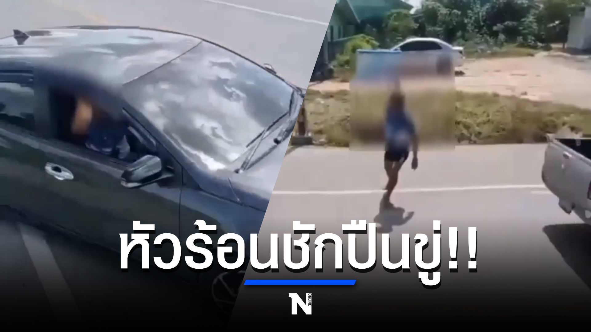ช่วงแรกเหมือนเรื่องจะจบแล้ว แต่คนขับรถเก๋งจอดรถอีกฝั่ง ก่อนวิ่งออกมาพร้อมอาวุธปืนยาว พร้อมทุบกระชากประตูรถ จนสร้างความแตกตื่นตกใจให้ผู้พบเห็น