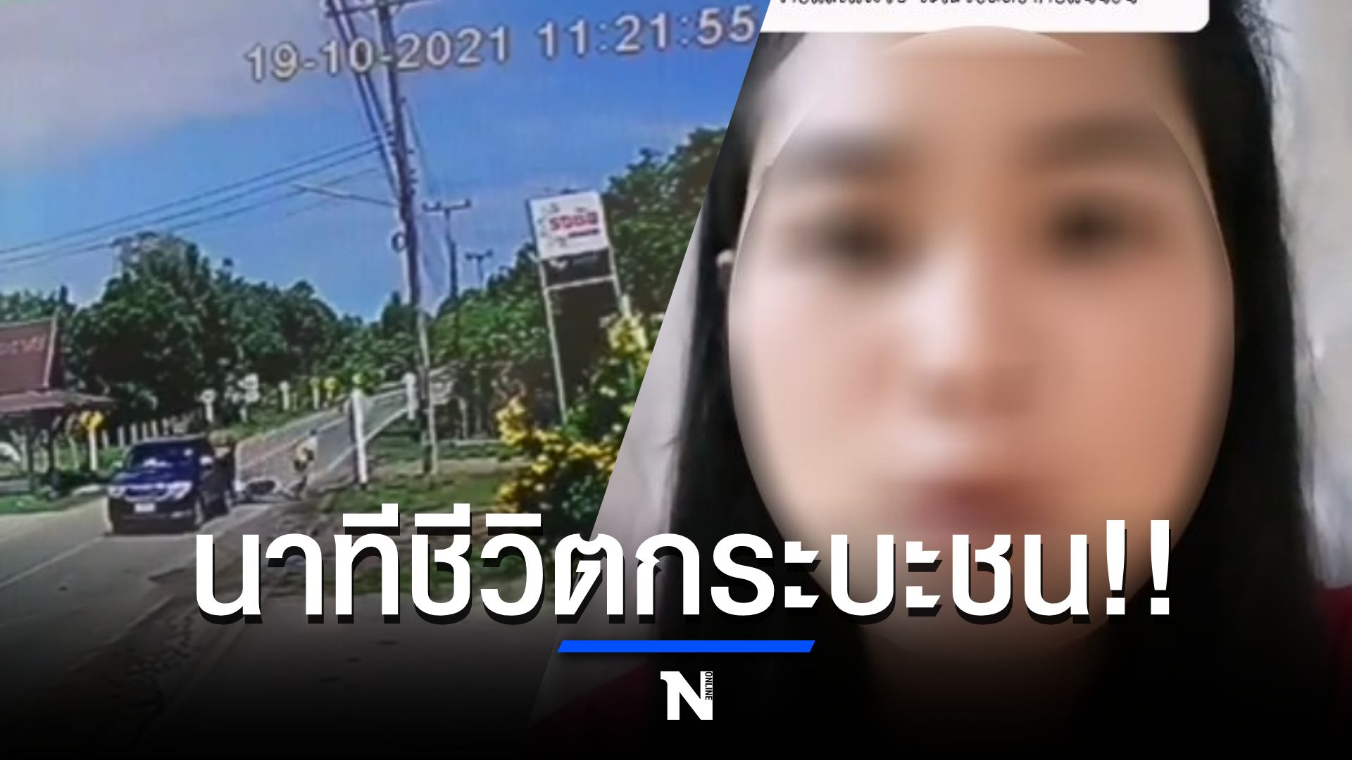 โดยหญิงสาวพยายามเข็นรถจักรยานยนต์ถอยหลังหลบ แต่ไม่ทัน เนื่องจากรถกระบะถอยมาด้วยความเร็ว จนอีกฝ่ายตัดสินใจบีบแตร และร้องตะโกน พร้อมวิ่งหลบลงข้างทาง