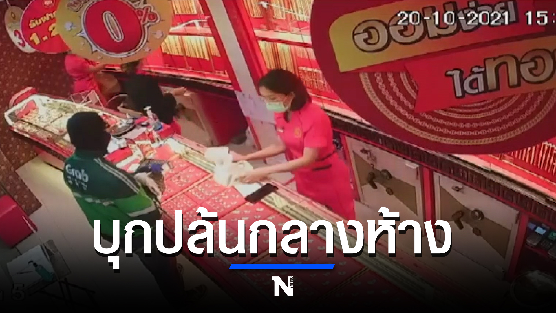ก่อนชายคนดังกล่าวได้ล้วงอะไรบางอย่างออกในจากถุงหิ้ว คล้ายอาวุธปืน ส่องไปทางพนักงานสาวห้างทอง สามคนที่กำลังช่วยกันตรวจเช็คทองรูปพรรณ ลงบันทึกเอกสารและเช็ดสร้อยทอง อยู่ โดยชายดังกล่าว ได้บอกให้พนักงานทั้งสามคน อยู่เฉย แล้วส่งถุงหิ้วสีน้ำตาล ส่งให้พนักงาน ให้เอาสร้อยทองที่แขวนโชว์ อยู่ที่แผงด้านหลัง มาใส่