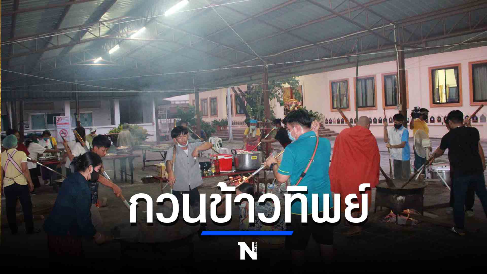 นางกนกพร มณีสุวรรณ อายุ 59 ปี อยู่บ้านเลขที่ 31 หมู่ 6 บ้านต้อน ต.เหนือ อ.เมือง จ.กาฬสินธุ์ กล่าวว่า วันนี้ตนและอุบาสก อุบาสิกา ญาติโยม ศิษยานุศิษย์เจ้าคุณบัวศรี หรือพระเทพสารเมธี ได้นำอุปกรณ์ ปัจจัย เช่น ไม้ฟืน มะพร้าว น้ำตาล ถั่ว งา มารวบรวม เป็นวัตถุดิบในการปรุงข้าวมธุปายาส หรือกวนข้าวทิพย์ ในเทศกาลออกพรรษาที่จะมีขึ้นในวันพรุ่งนี้ (21 ต.ค.64) ทั้งนี้ บรรยากาศในการกวนข้าวทิพย์ในปีนี้ ค่อนข้างจะเงียบเหงาไปนิด เนื่องจากสถานการณ์โควิด-19 แต่ก็มีทยอยมาร่วมกิจกรรมไม่ขาดสาย