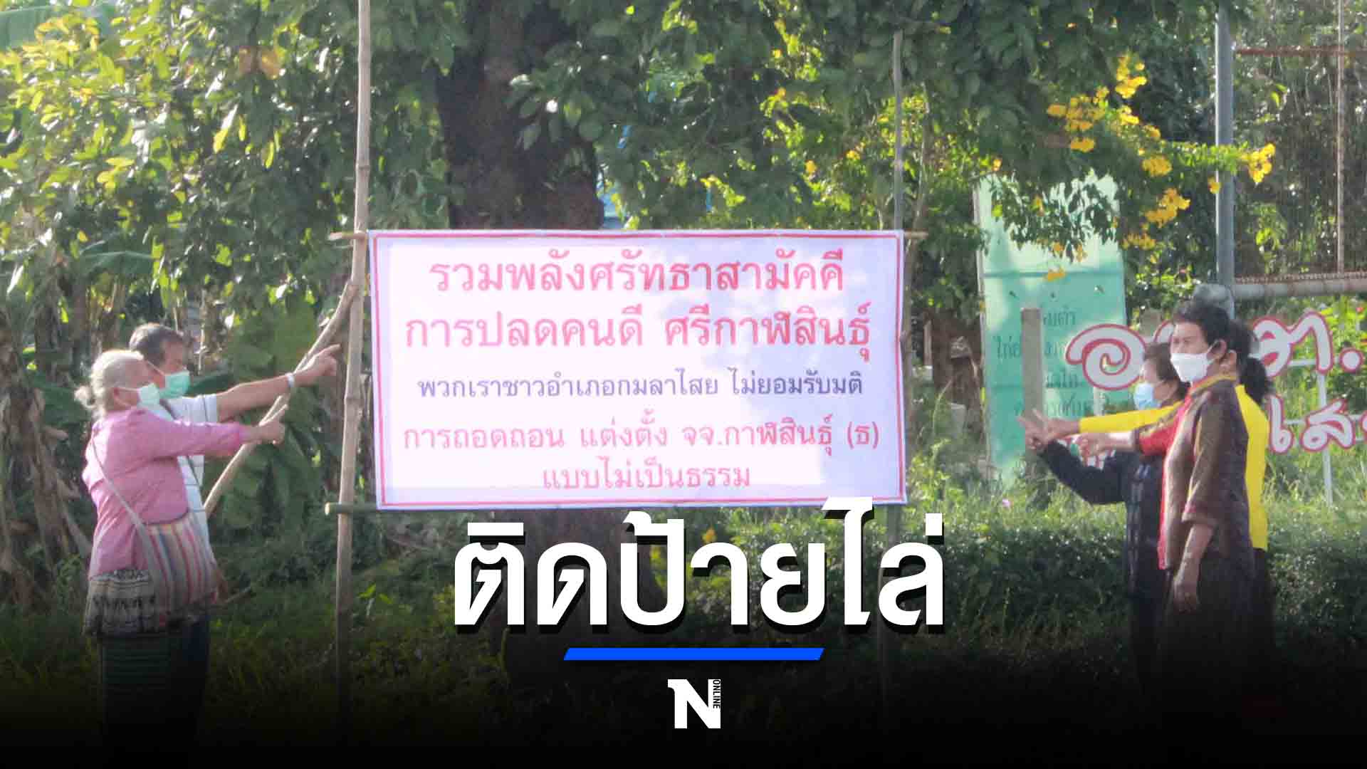 ล่าสุดที่ริมถนนสายอำเภอกมลาไสย-มหาสารคาม บริเวณปากทางเข้าบ้านข้าวหลาม ต.กมลาไสย อ.กมลาไสย จ.กาฬสินธุ์ ชาวบ้านได้นำป้าย ที่เขียนข้อความ “รวมพลังศรัทธาสามัคคี การปลดคนดีศรีกาฬสินธุ์ พวกเราชาวอำเภอกมลาไสยไม่ยอมรับมติการถอดถอน แต่งตั้ง จจ.กาฬสินธุ์ (ธ)แบบไม่เป็นธรรม”มาปักไว้ทางเข้าหมู่บ้าน เพื่อเป็นสัญลักษณ์ในการคัดค้านคำสั่งของมส.และพศ.ที่ถอดถอดเจ้าคณะจังหวัดกาฬสินธุ์ โดยไม่เป็นธรรมและไม่มีการชี้แจงถึงสาเหตุ และเป็นการแสดงเจตนารมณ์ไม่ยอมรับการแต่งตั้งพระครูสุทธิญาณโสภณ หรือพระอาจารย์เล็ก จากเดิมเป็นเจ้าคณะอำเภอสังคม จ.หนองคาย ข้ามห้วยมาเป็นเจ้าคณะ จ.กาฬสินธุ์ (ธรรมยุต)คนใหม่อีกด้วย