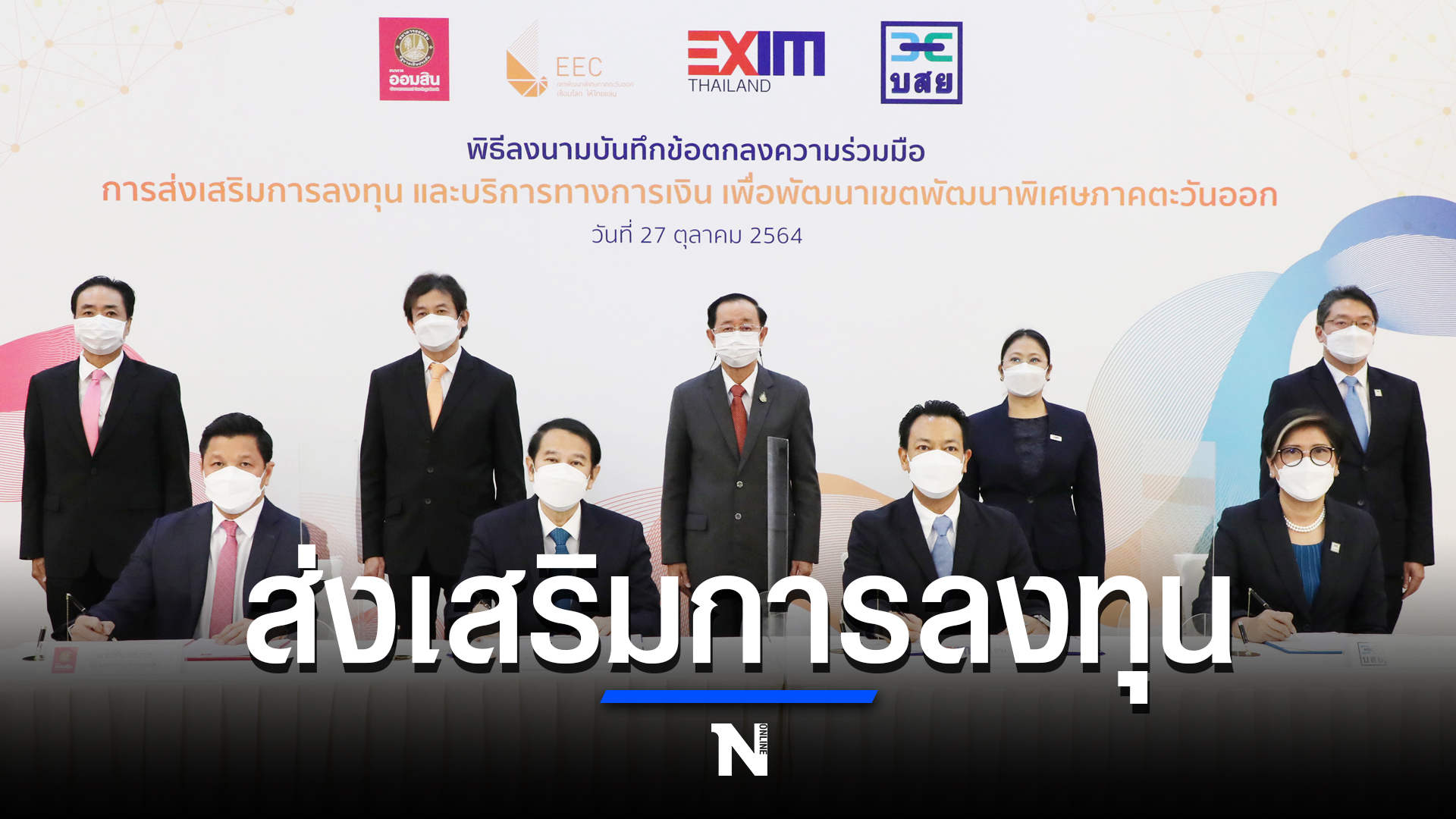 27 ตุลาคม 2564 นายอาคม เติมพิทยาไพสิฐ รัฐมนตรีว่าการกระทรวงการคลัง เป็นประธานในพิธีลงนามบันทึกข้อตกลงความร่วมมือ การส่งเสริมการลงทุนและบริการทางการเงินเพื่อพัฒนาเขตพัฒนาพิเศษภาคตะวันออก ระหว่าง สำนักงานคณะกรรมการนโยบายเขตพัฒนาพิเศษภาคตะวันออก (สกพอ.) ธนาคารออมสิน ธนาคารเพื่อการส่งออกและนำเข้าแห่งประเทศไทย (เอ็กซิมแบงค์) และบรรษัทประกันสินเชื่ออุตสาหกรรมขนาดย่อม (บสย.) โดยมี นายคณิศ แสงสุพรรณ เลขาธิการคณะกรรมการนโยบายเขตพัฒนาพิเศษภาคตะวันออก นายวิทัย รัตนากร ผู้อำนวยการธนาคารออมสิน นายรักษ์ วรกิจโภคาทร กรรมการผู้จัดการเอ็กซิมแบงค์ และนางวสุกานต์ วิศาลสวัสดิ์ รักษาการผู้จัดการทั่วไป บสย. เป็นผู้ลงนาม พร้อมด้วยผู้แทนจากหน่วยงาน สกพอ. และ 3 สถาบันทางการเงินดังกล่าว ร่วมเป็นสักขีพยาน ณ ห้องประชุมวายุภักษ์ 1 อาคารสำนักงานปลัดกระทรวงการคลัง
