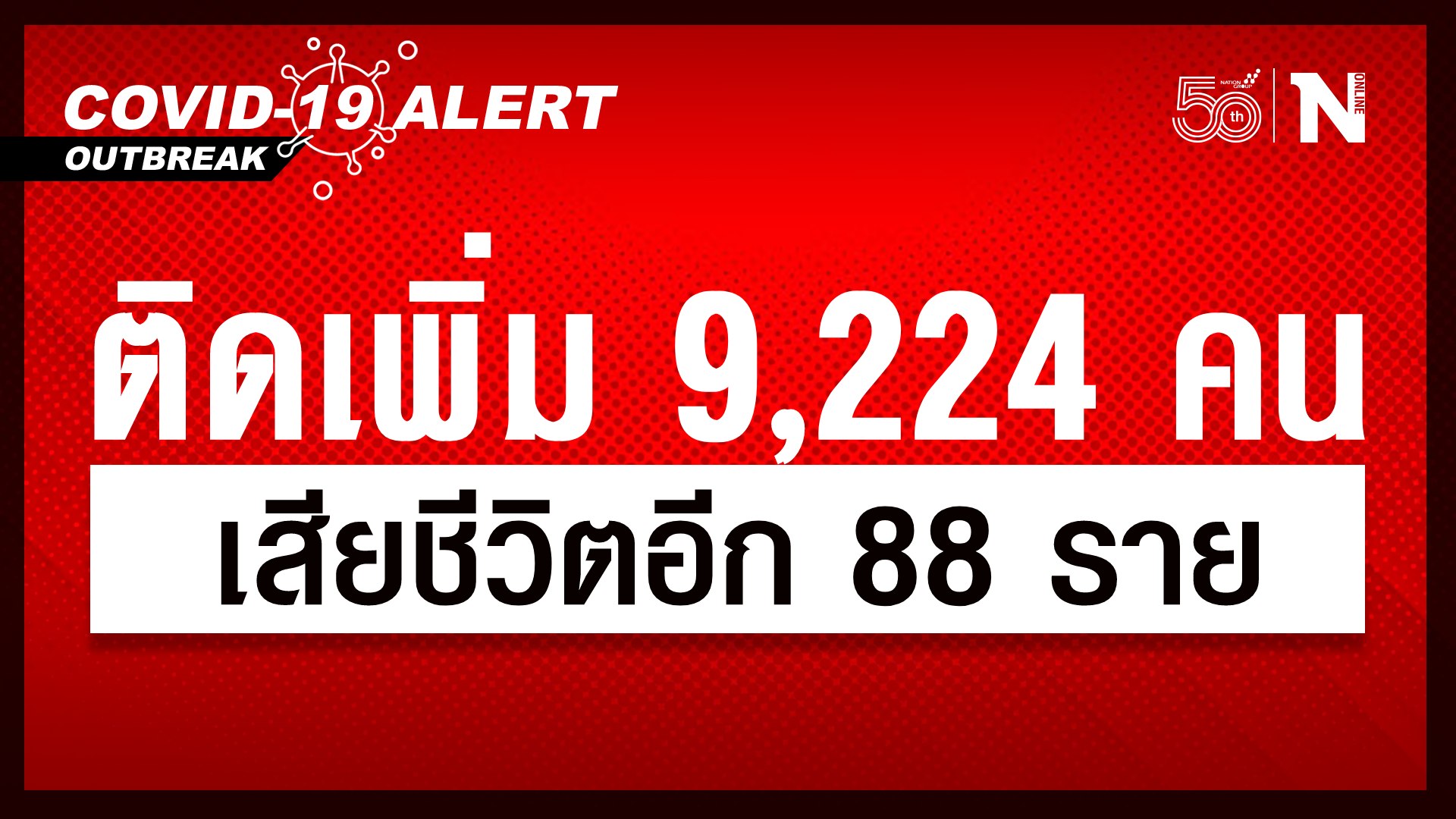 หายป่วยกลับบ้าน 8,305 ราย หายป่วยสะสม 1,756,449 ราย (ตั้งแต่ 1 เมษายน) ผู้ป่วยกำลังรักษา 100,132 ราย เสียชีวิต 88 ราย
