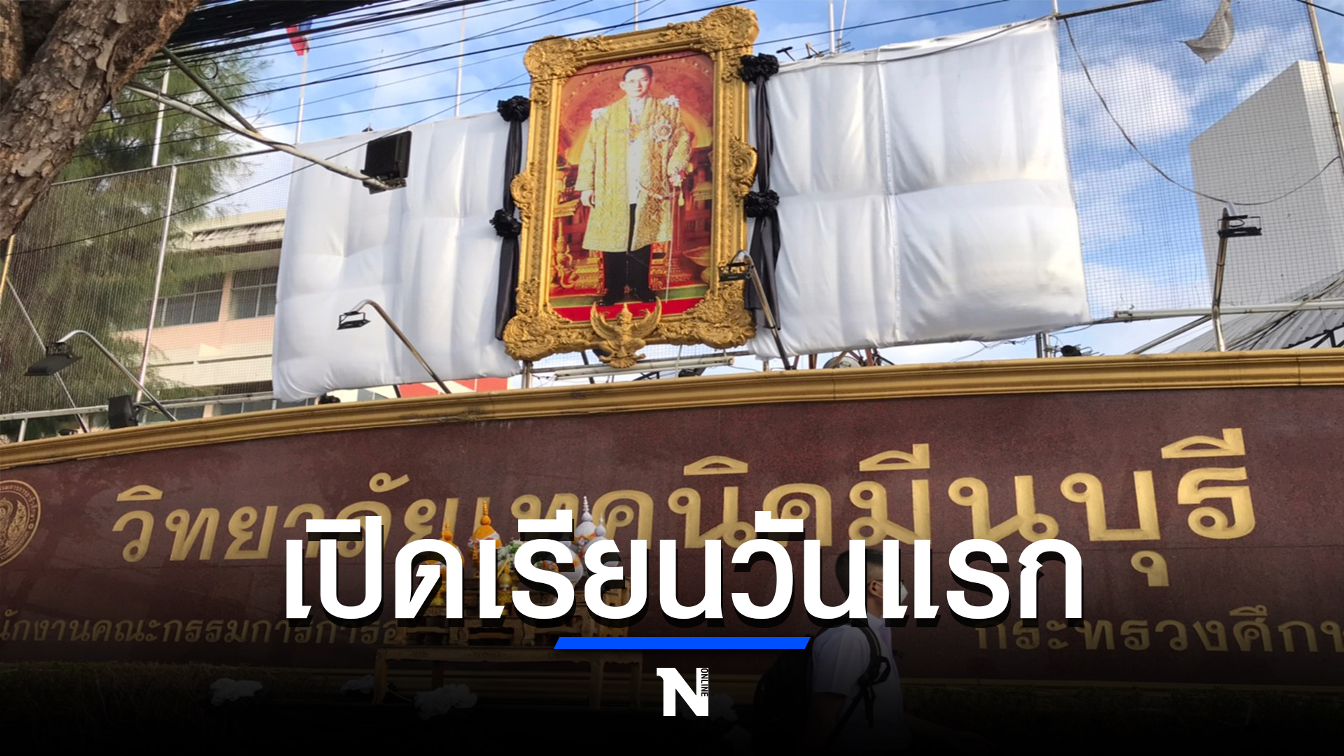 เวลา 07:30 น. บรรยากาศการเปิดเทอมวันแรกในวันที่ 1 พฤศจิกายน 2564 ของทางวิทยาลัยเทคนิคมีนบุรี มีนักเรียนทยอยเดินทางเข้าภายในวิทยาลัย โดยมีจุดบริการคัดกรองโรคโควิด-19 บริการเจลล้างมือแอลกอฮอล์ทั้งสองฝั่ง ทางเข้าวิทยาลัยฯ